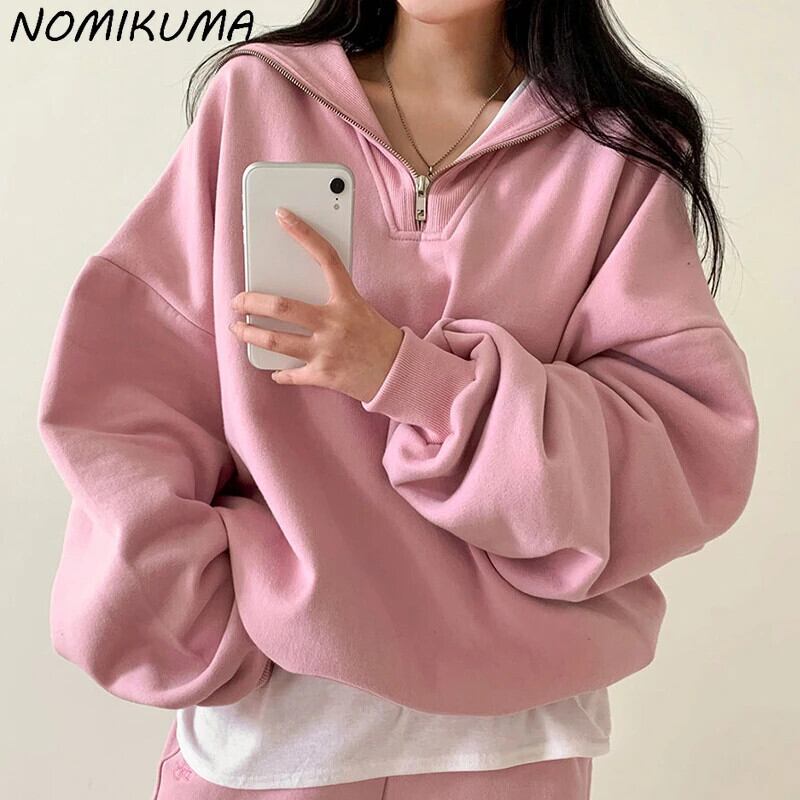 Nomikuma シック秋セーラー襟 Lカジュアル無地長袖プルオーバートレーナートップス ロング オータム 秋物 ソリッドカラー