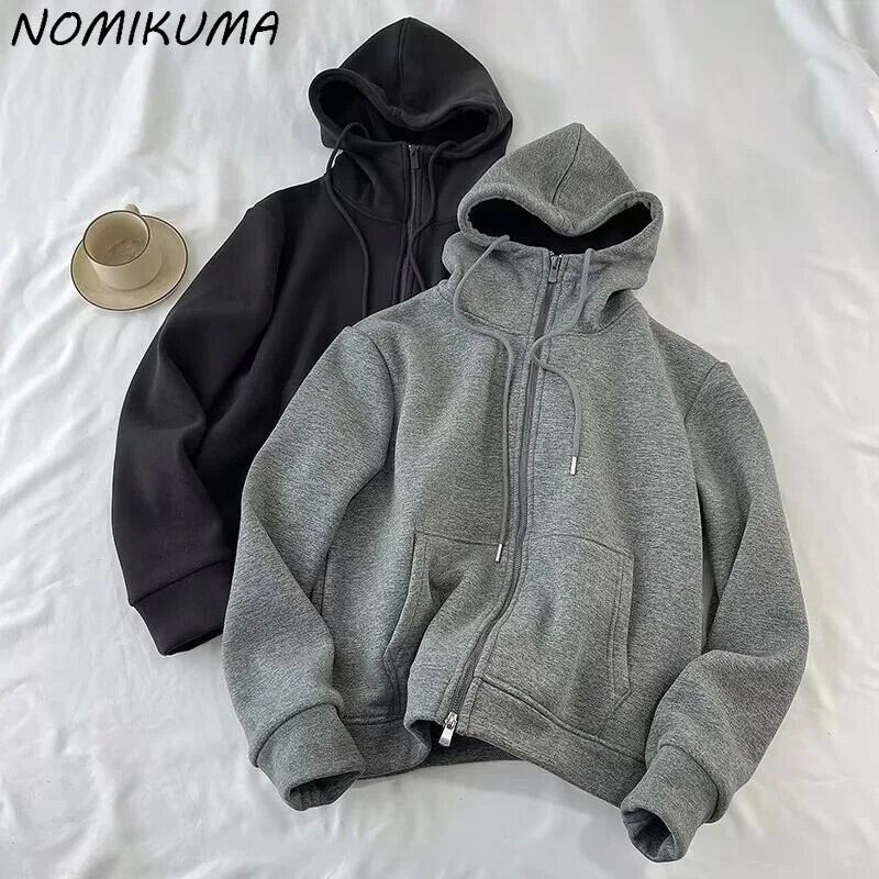 Nomikuma フリース因果フード付きスウェットシャツカーディガンコート秋冬ジップアップパーカー長袖ジャンパー ロング オータム 秋物 ウィンター 冬物