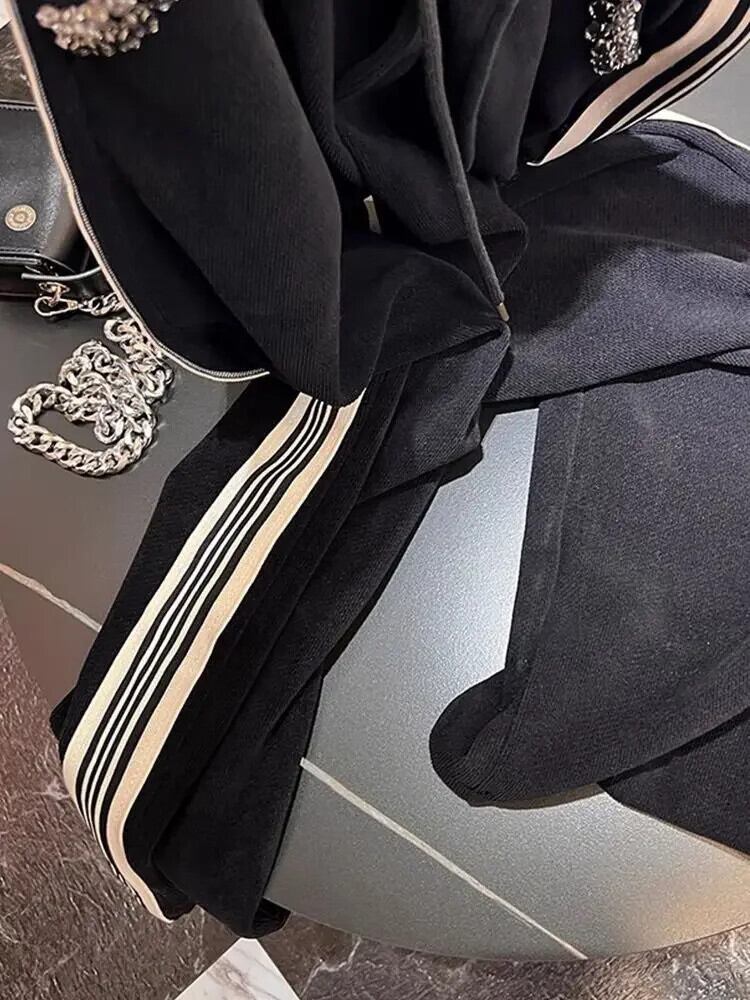 因果スウェットパンツシックダイヤモンドポケットレースアップウエスト長ズボンサイドストライプパンツ ロング