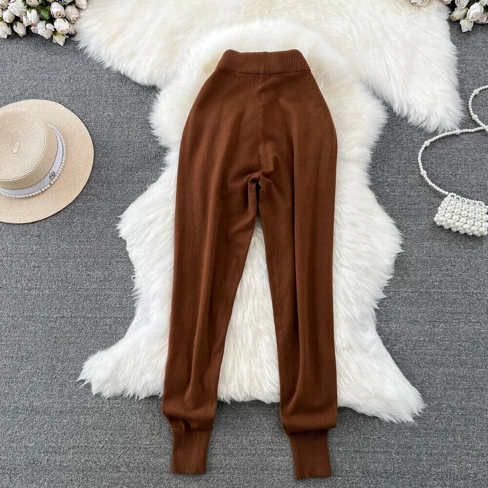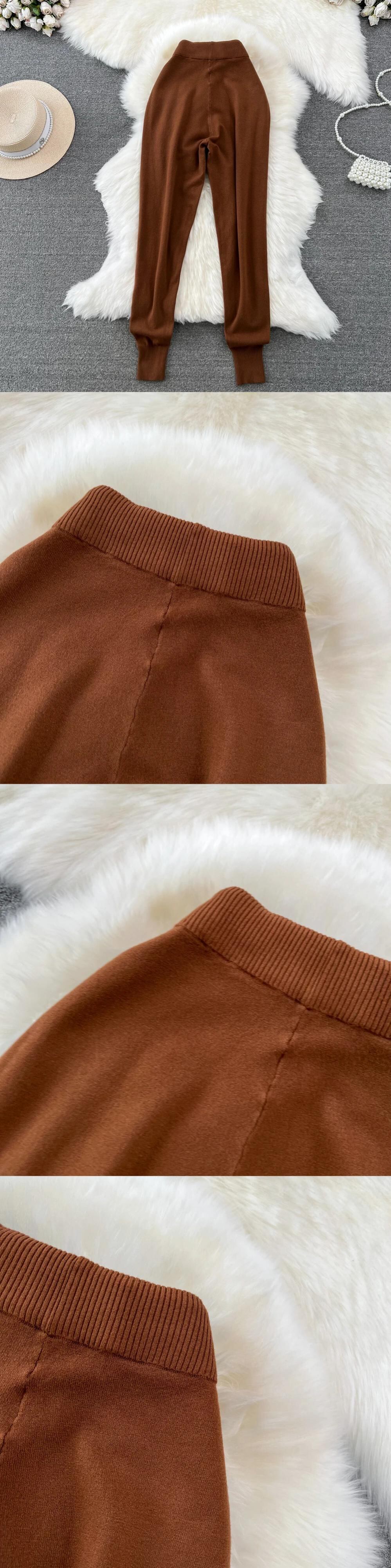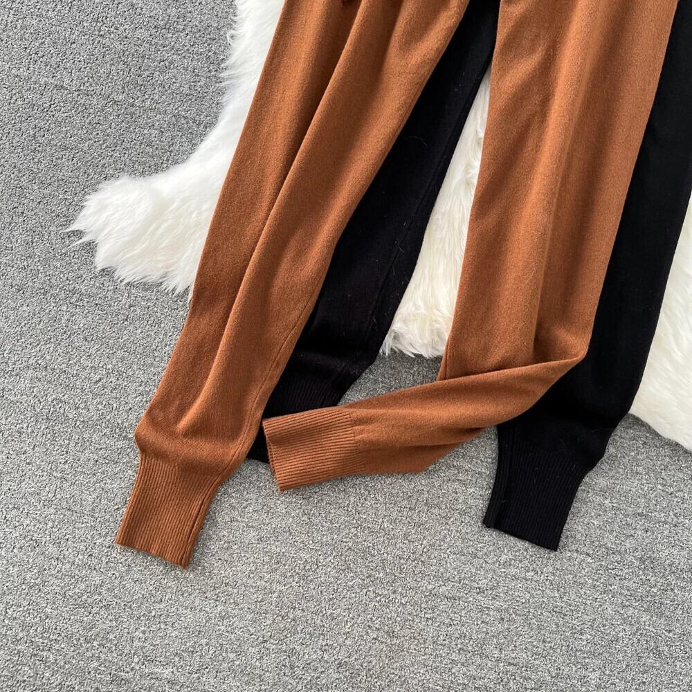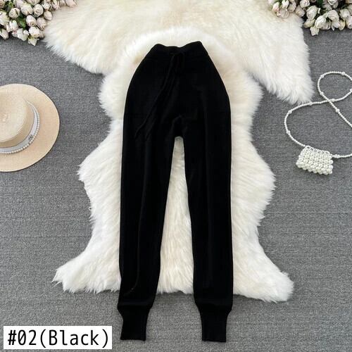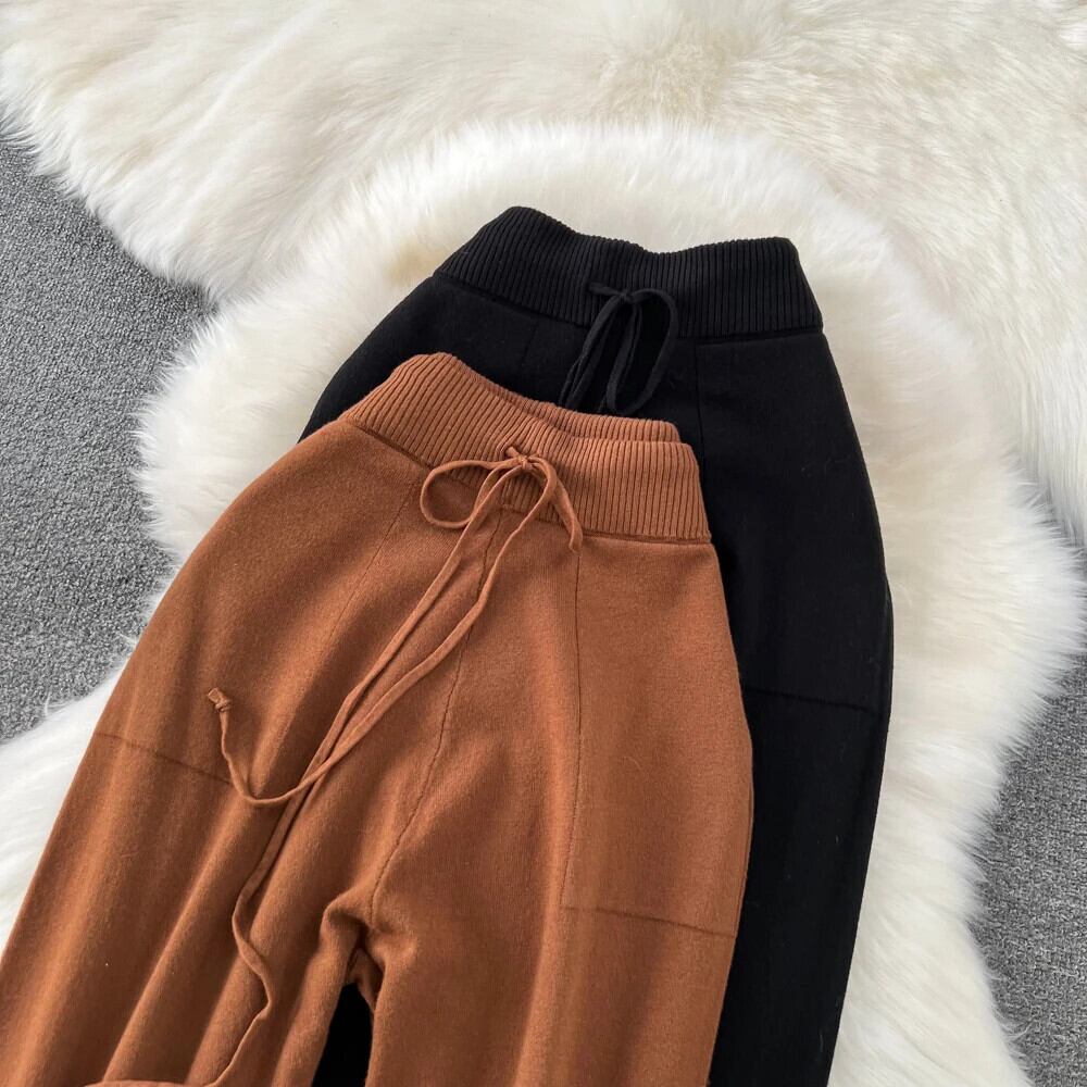 Nomikuma レースアップウエストセーターパンツ因果秋冬長ズボンソリッドニットパンツデ ロング オータム 秋物 ウィンター 冬物 ソリッドカラー
