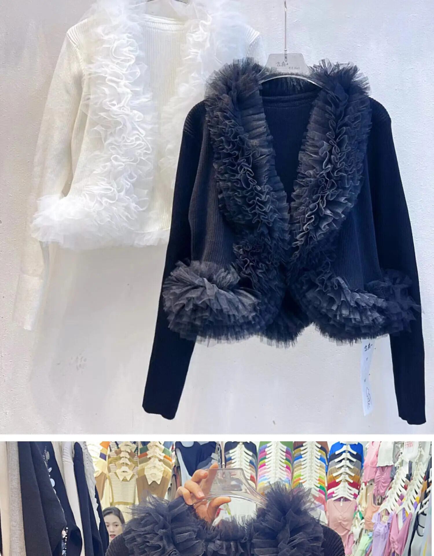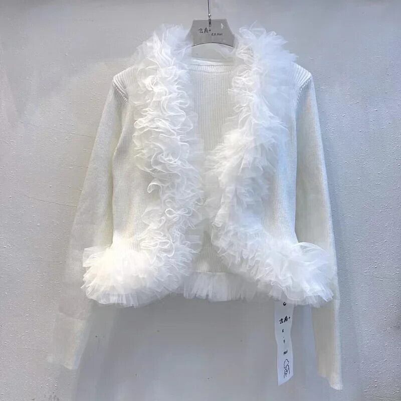 Nomikuma ニットセーターシックメッシュフリルパッチワークスリムカーディガン秋冬ニットコート オータム 秋物 ウィンター 冬物