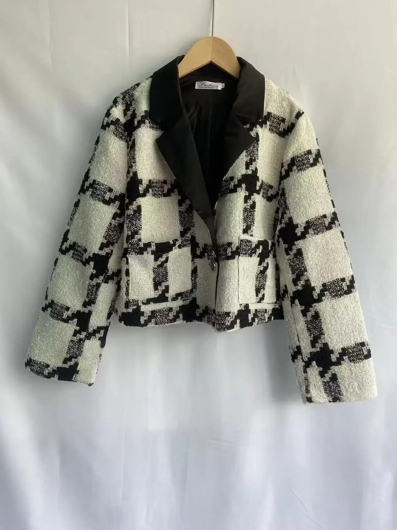 Nomikuma ヒットカラーパッチワークツイードショートコート秋冬厚手ジャケットターンダウン襟生き抜くトップス オータム 秋物 ウィンター 冬物