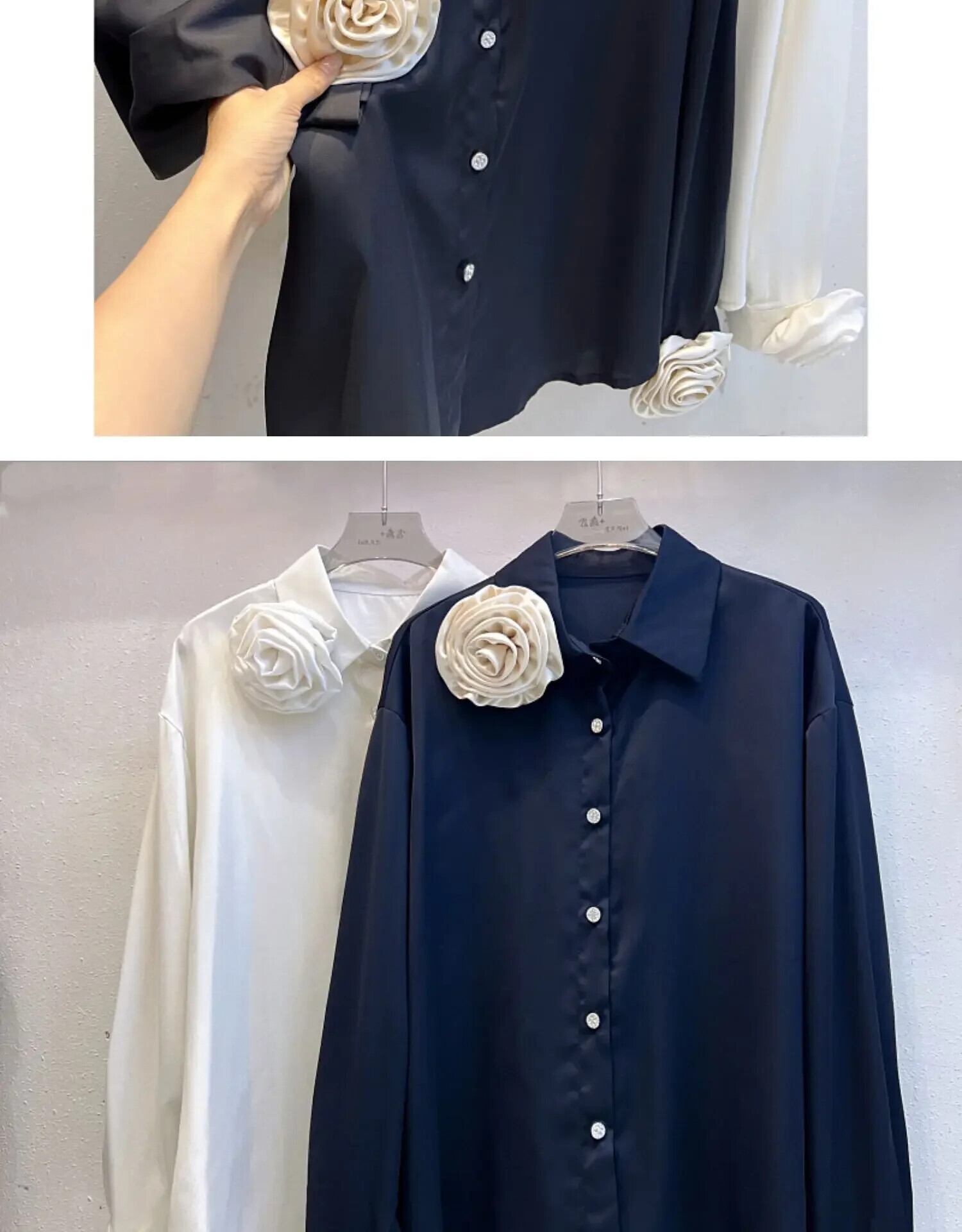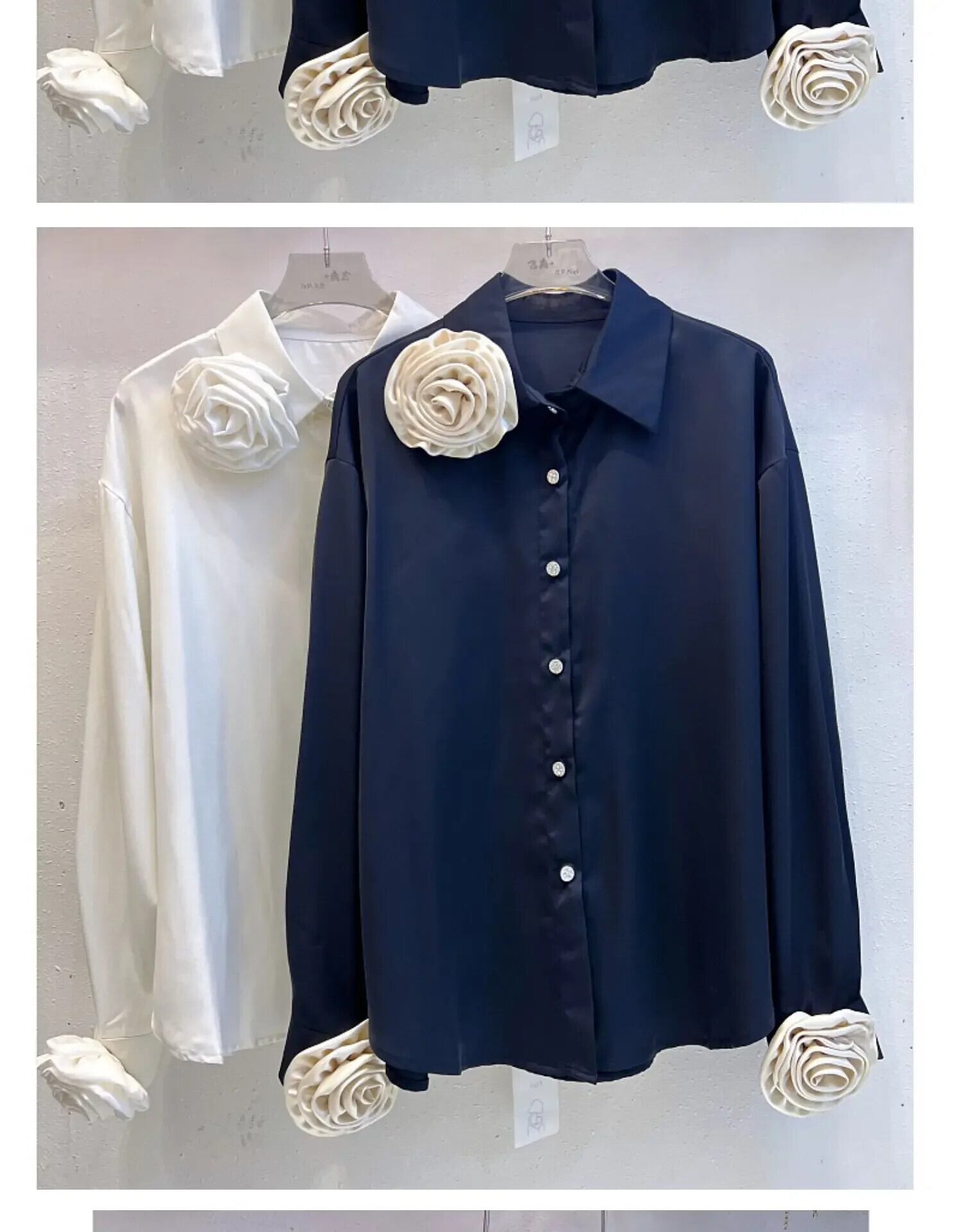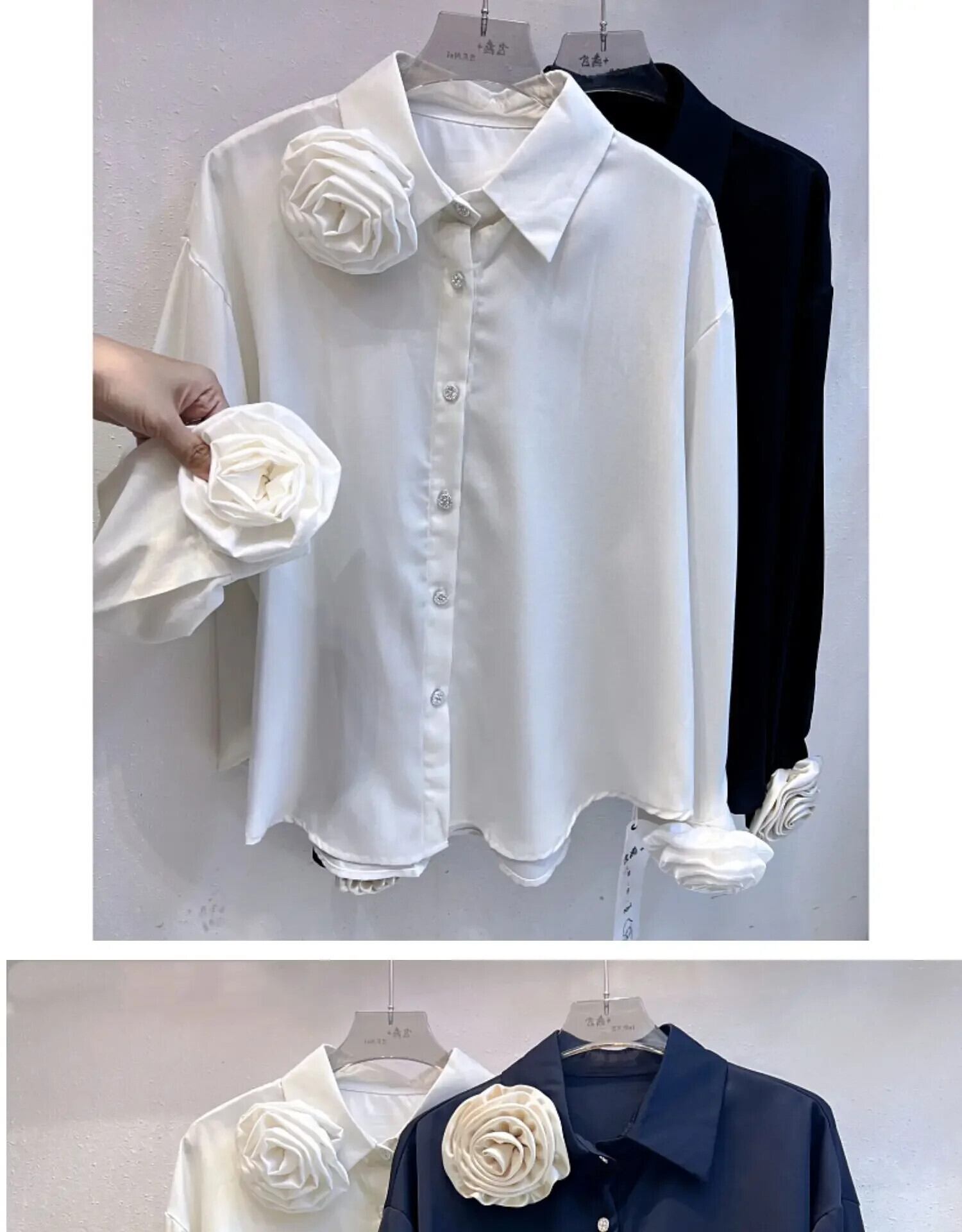 Nomikuma シック 3D 花パッチワーク長袖ブラウス 2-23 Sprign 秋シャツ因果トップス ロング オータム 秋物 フラワーデザイン