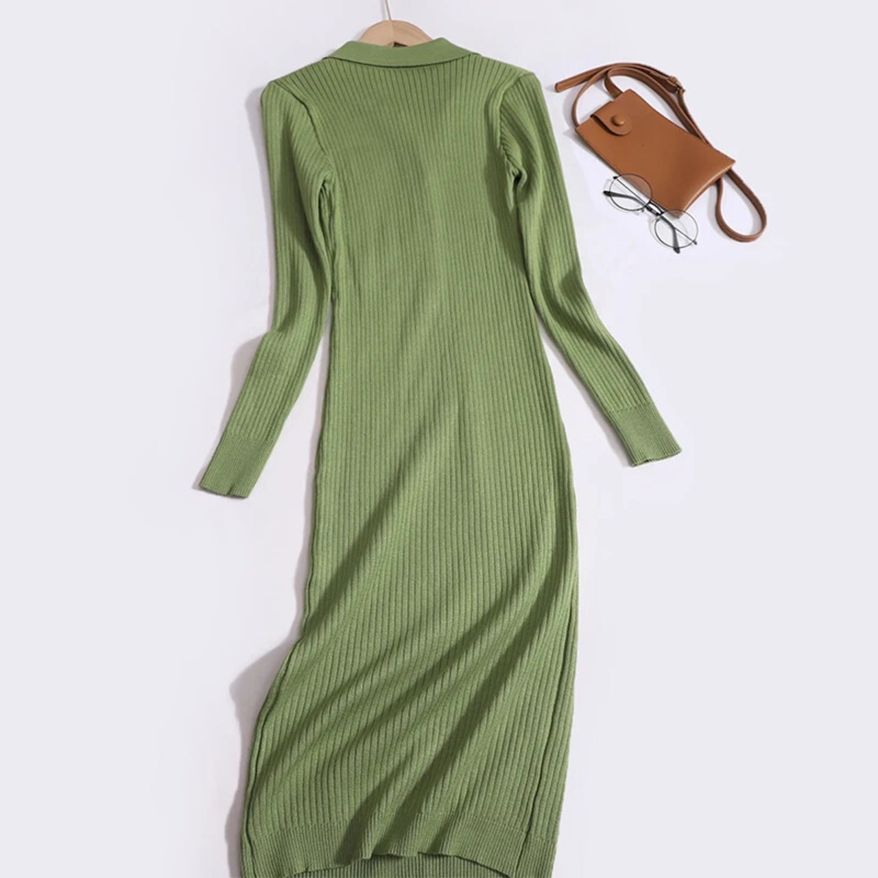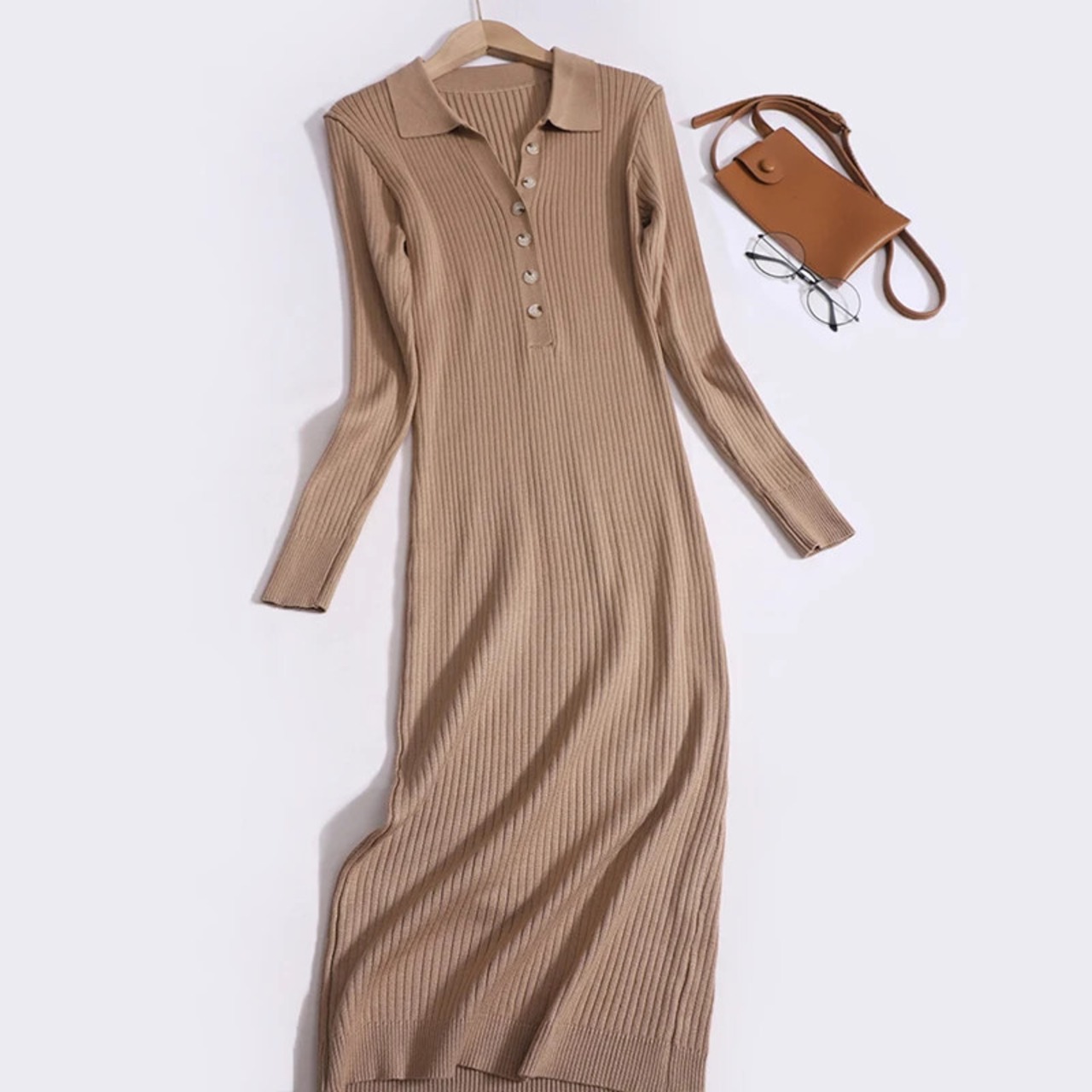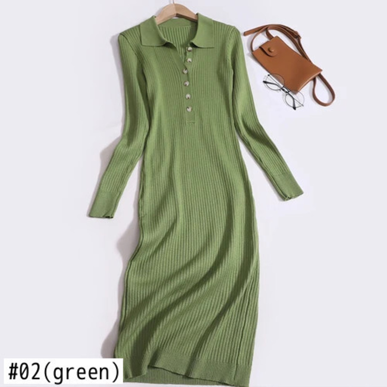 Nomikuma ニットドレス秋ターンダウン襟ボタンフィットラップヒップドレスセーターロングローブ オータム 秋物 ソリッドカラー