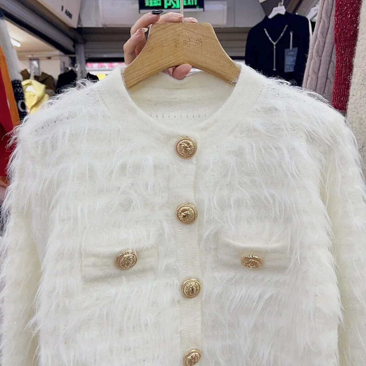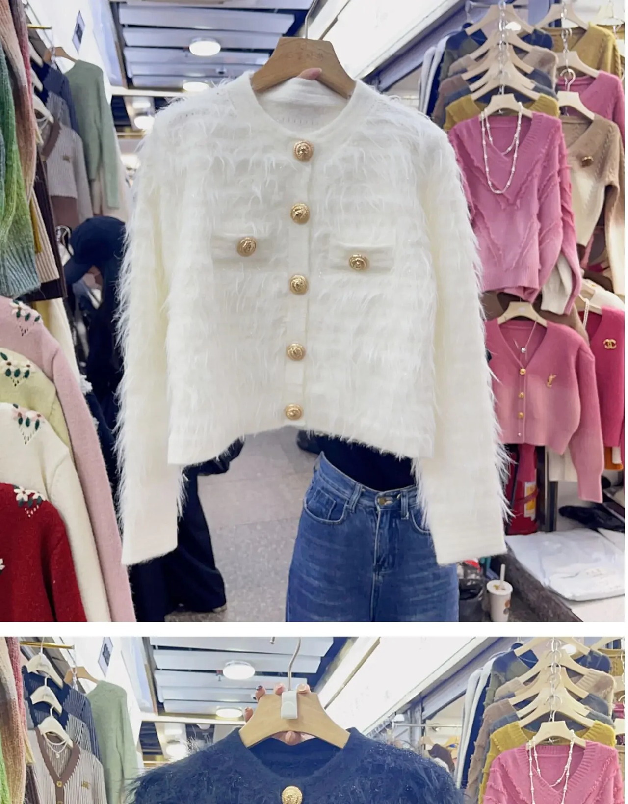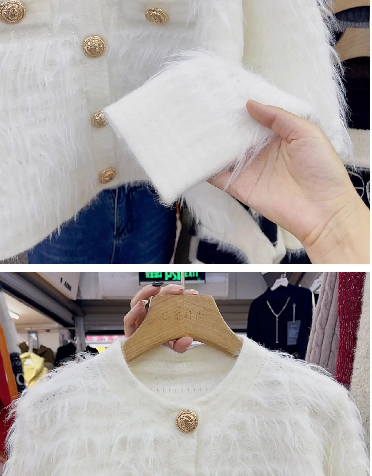 Nomikuma 秋冬フェイクミンクカシミヤニットカーディガン O ネックショートスリムセーターニットコート オータム 秋物 ウィンター 冬物 ファー Oネック