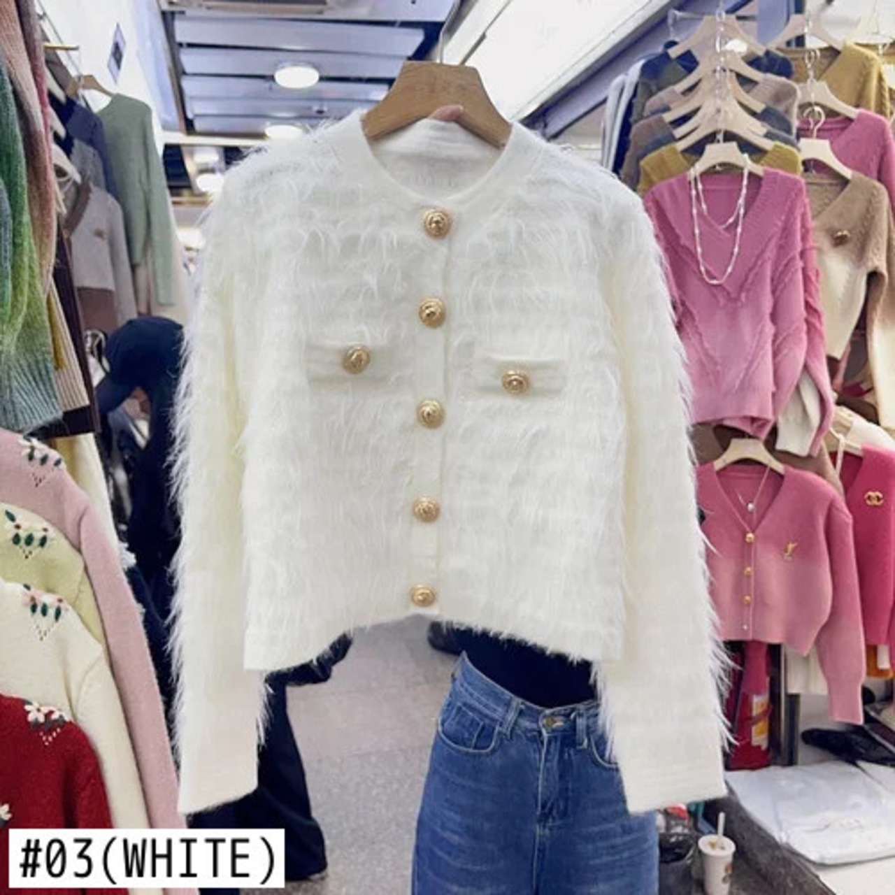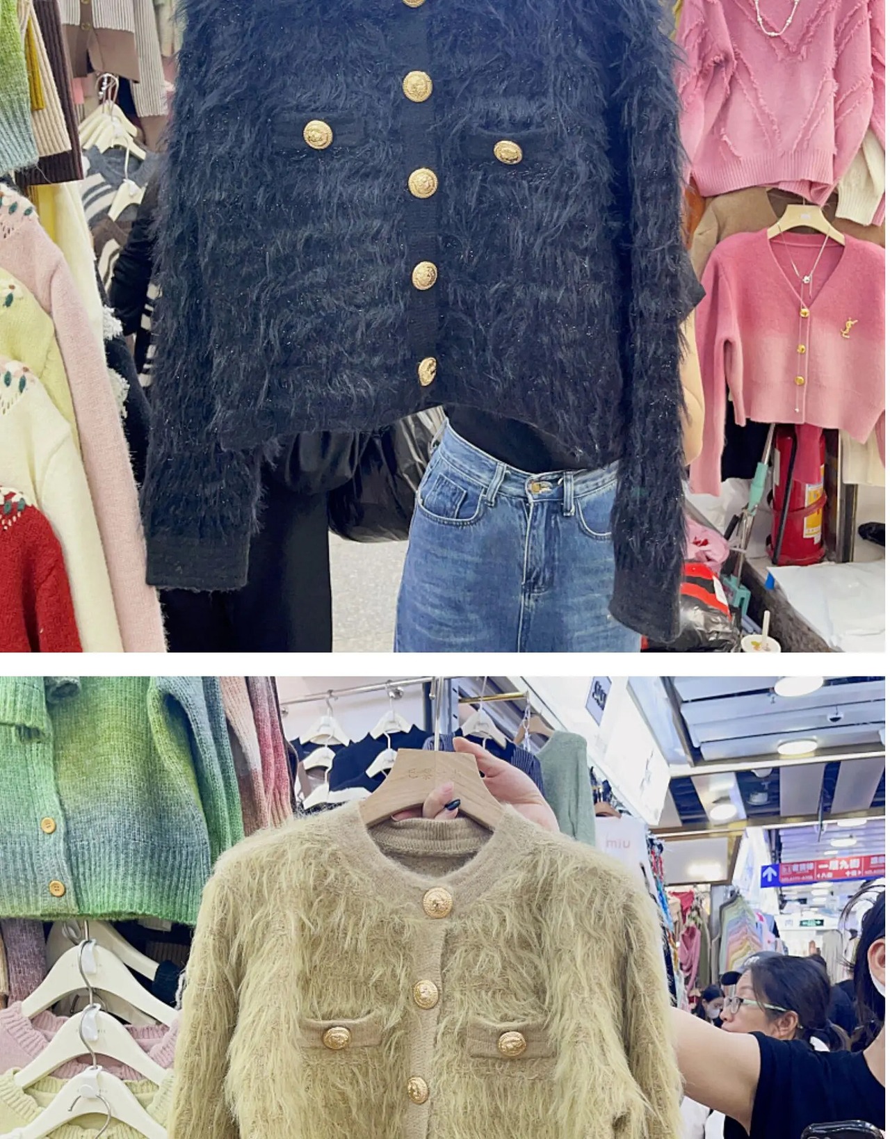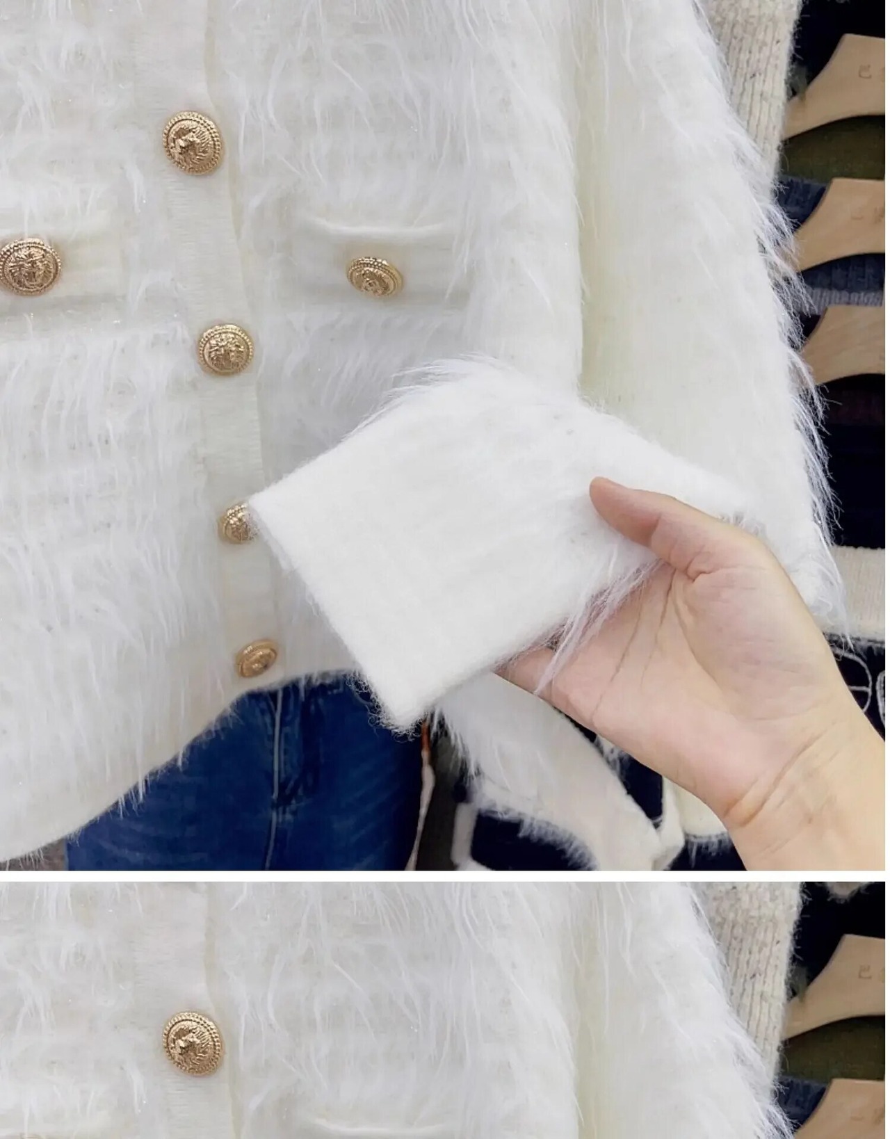 Nomikuma 秋冬フェイクミンクカシミヤニットカーディガン O ネックショートスリムセーターニットコート オータム 秋物 ウィンター 冬物 ファー Oネック