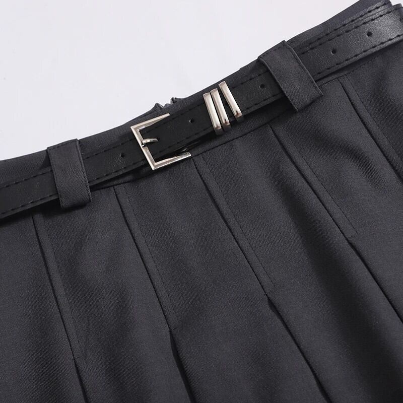 Nomikuma ベルト付きスカート レディース 秋冬 ウエスト カジュアル Aライン ロング プリーツ スカート ファルダス デ ボトムス オータム 秋物 ウィンター 冬物 ハーネス