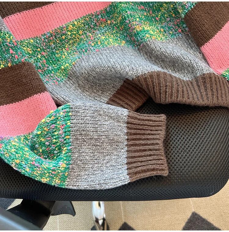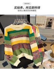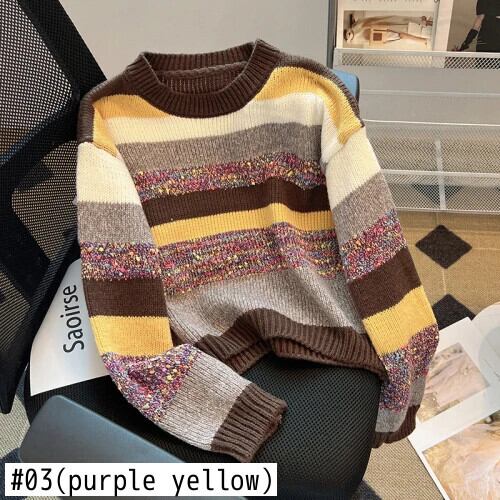 Nomikuma 秋冬ニットプルオーバージャカードレインボーストライプ因果ニットセーター オータム 秋物 ウィンター 冬物
