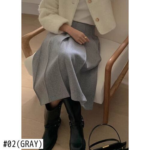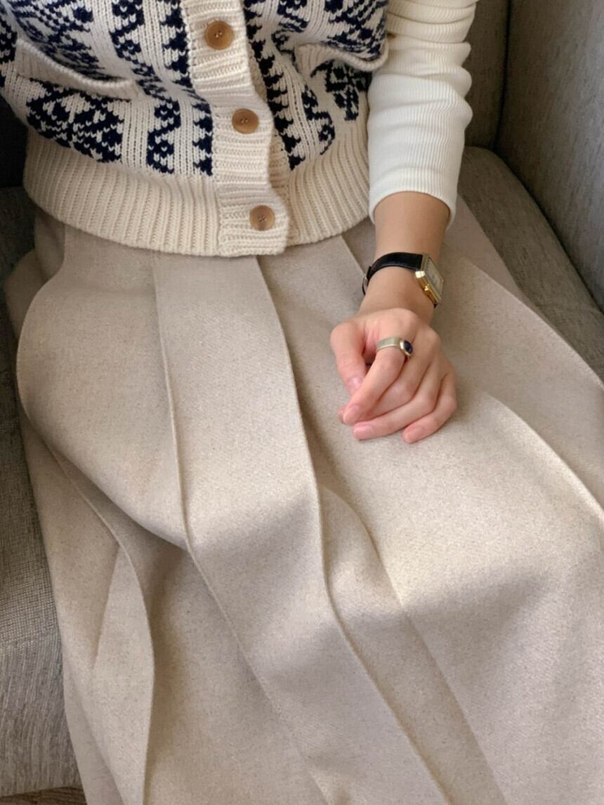 Nomikuma シック秋冬レトロウエストウエスト多用途ソリッドカラーウールプリーツ A ラインハーフレングススカート レッド オータム 秋物 ウィンター 冬物 Aライン