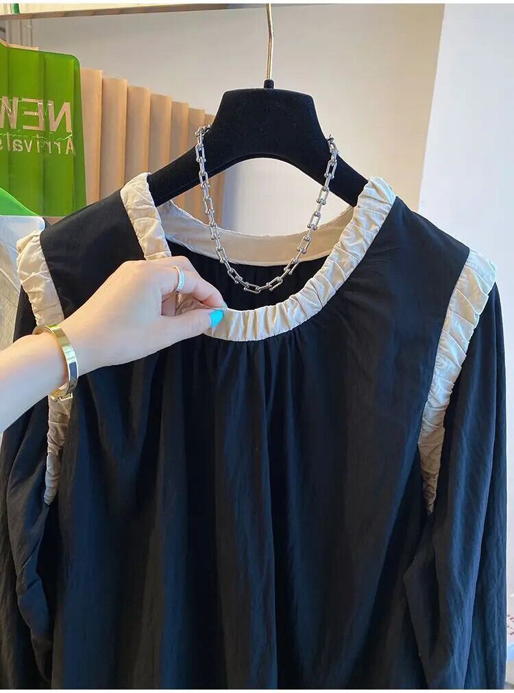 Nomikuma 秋因果ヒットカラー長袖 O ネックブラウスレディーストップス De ロング オータム 秋物 Oネック