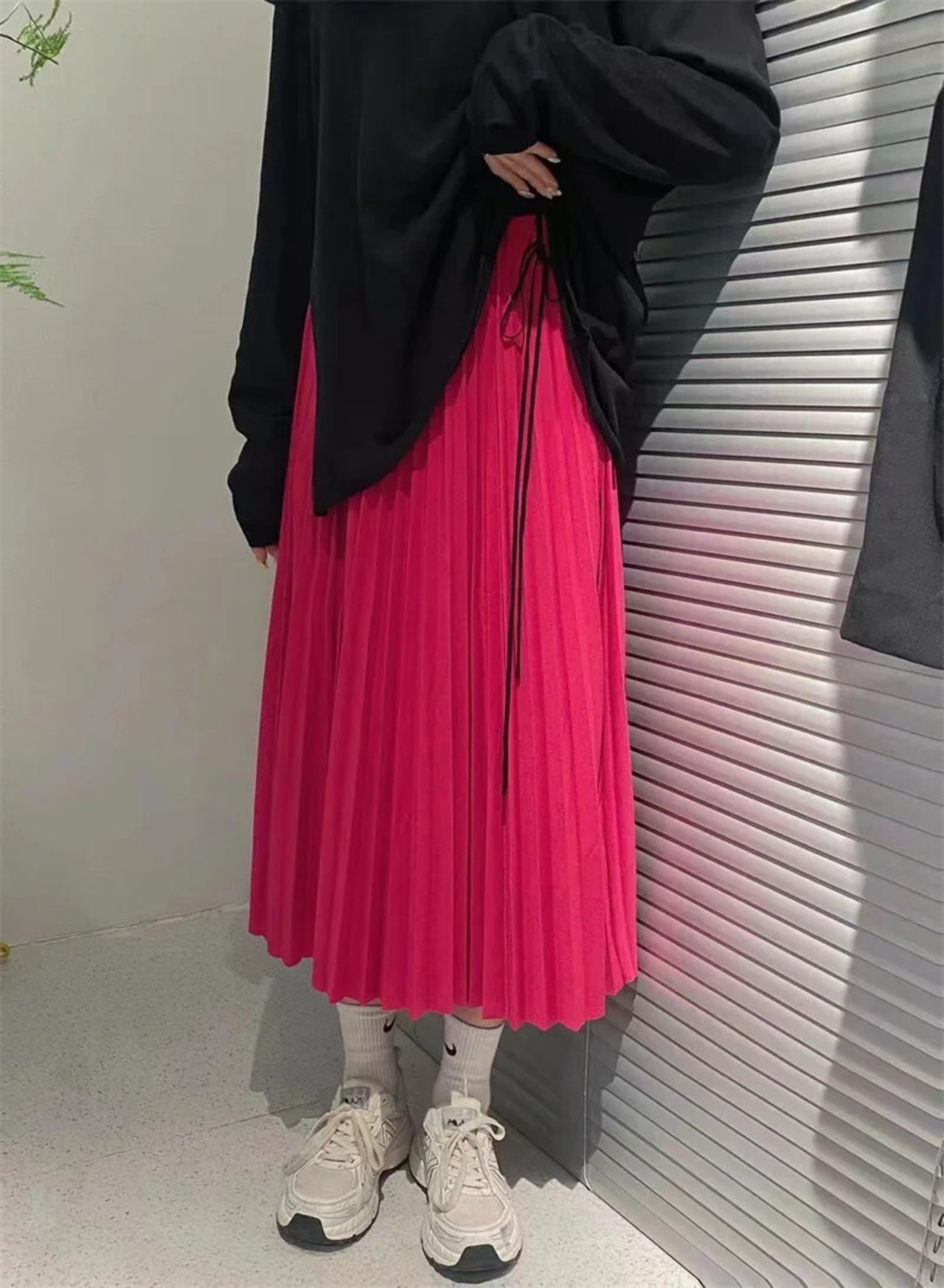 Nomikuma 秋 キャンディカラー プリーツ ミドル丈スカート ウエストゴム 万能 カジュアル Aライン ロングスカート エラスティック 伸縮 オータム 秋物