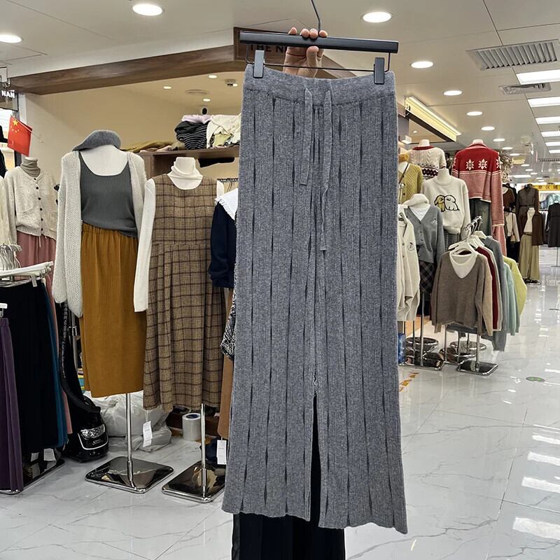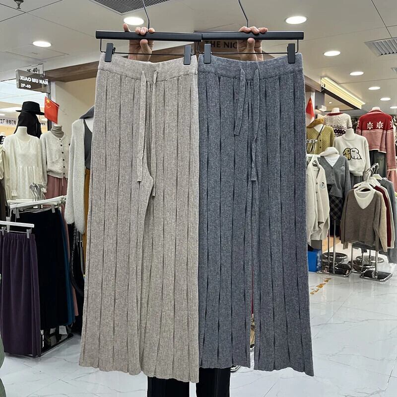 Nomikuma レースアップウエストセーターパンツ秋冬長ズボン因果ニットワイドレッグパンツ ロング オータム 秋物 ウィンター 冬物 ワイドパンツ