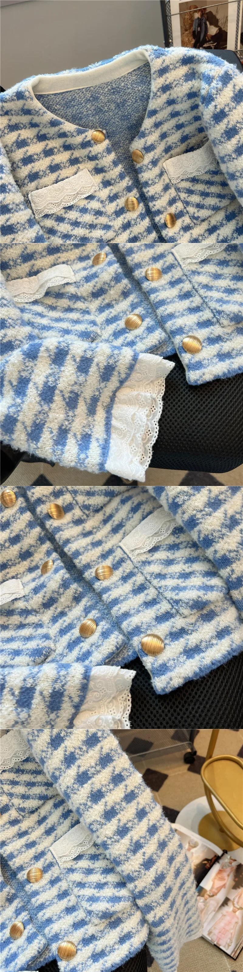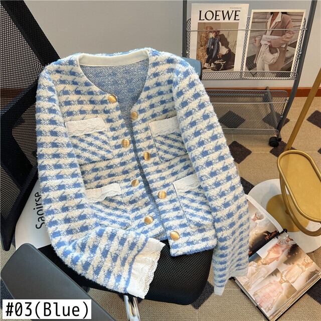Nomikuma ニットカーディガンダブルブレスト O ネックセーターコートコントラストカラーニットジャケット Oネック