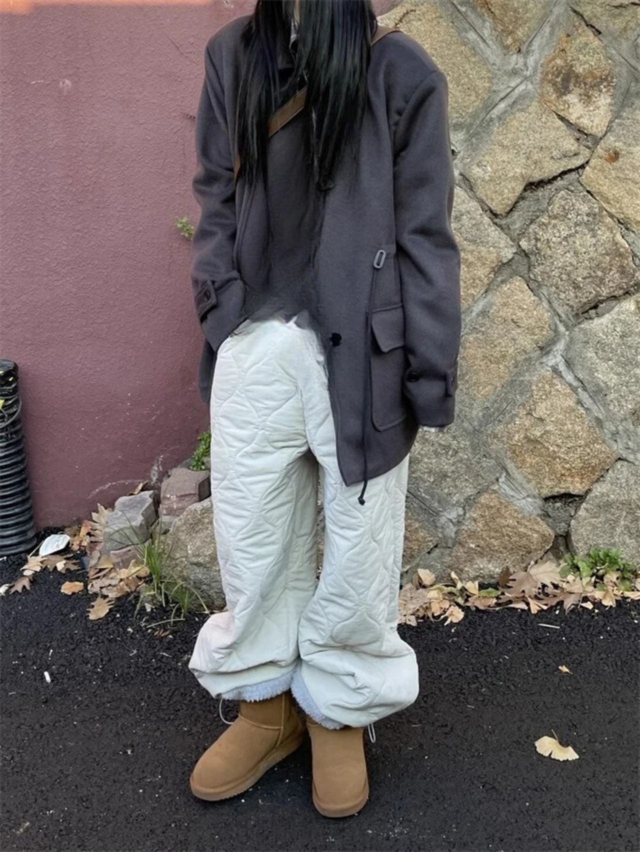 Nomikuma 秋冬厚みある因果ロングパンツ弾性ウエストズボンワイドレッグパンツ エラスティック 伸縮 オータム 秋物 ウィンター 冬物 ワイドパンツ