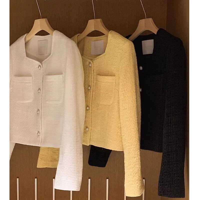Nomikuma 秋スクエアネックパールシングルブレストポケット多用途ツイードコートカーディガンジャケット オータム 秋物 真珠 スクウェア