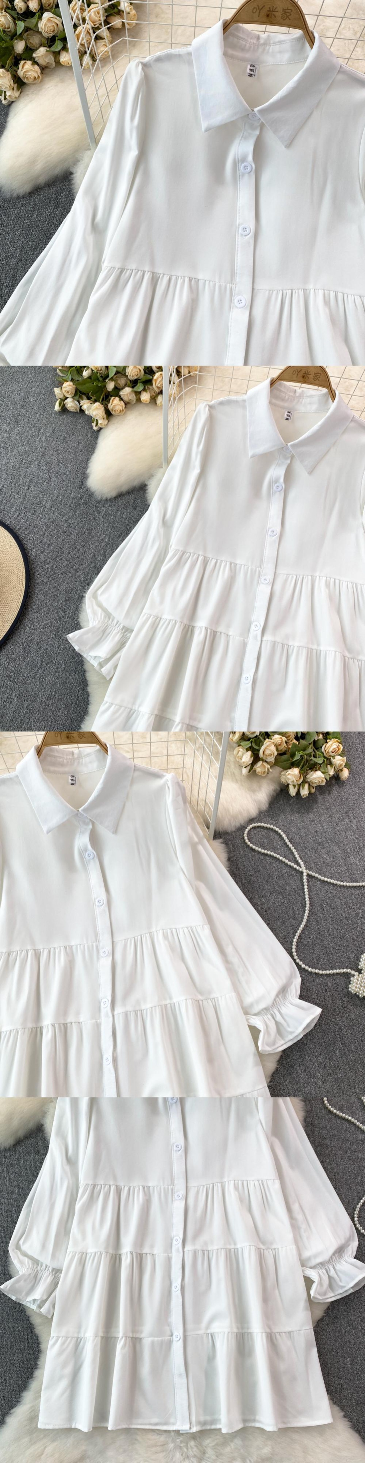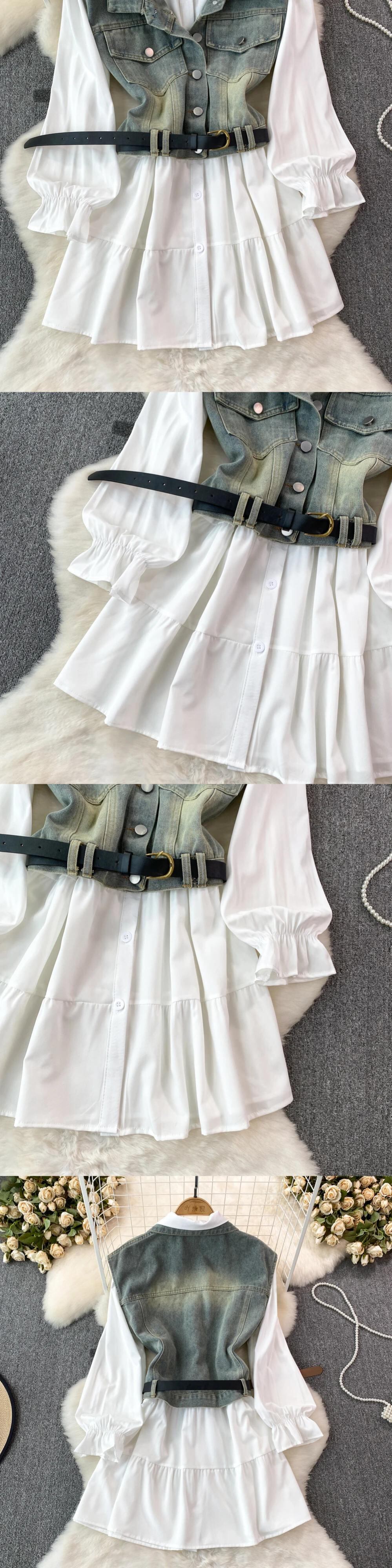 Nomikuma 甘い長袖ターンダウン襟因果シングルブレストブラウスドレス 2 枚デミンベストチョッキセット ロング 大人ガーリー スウィート キュート カジュアル