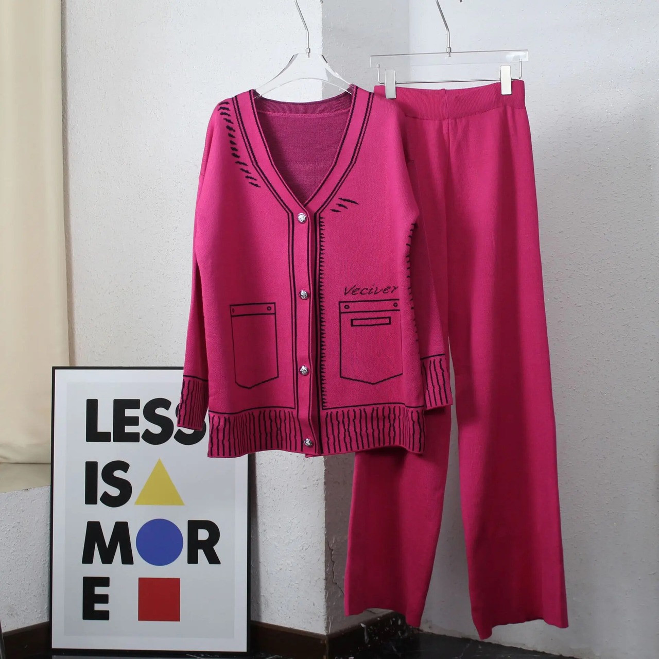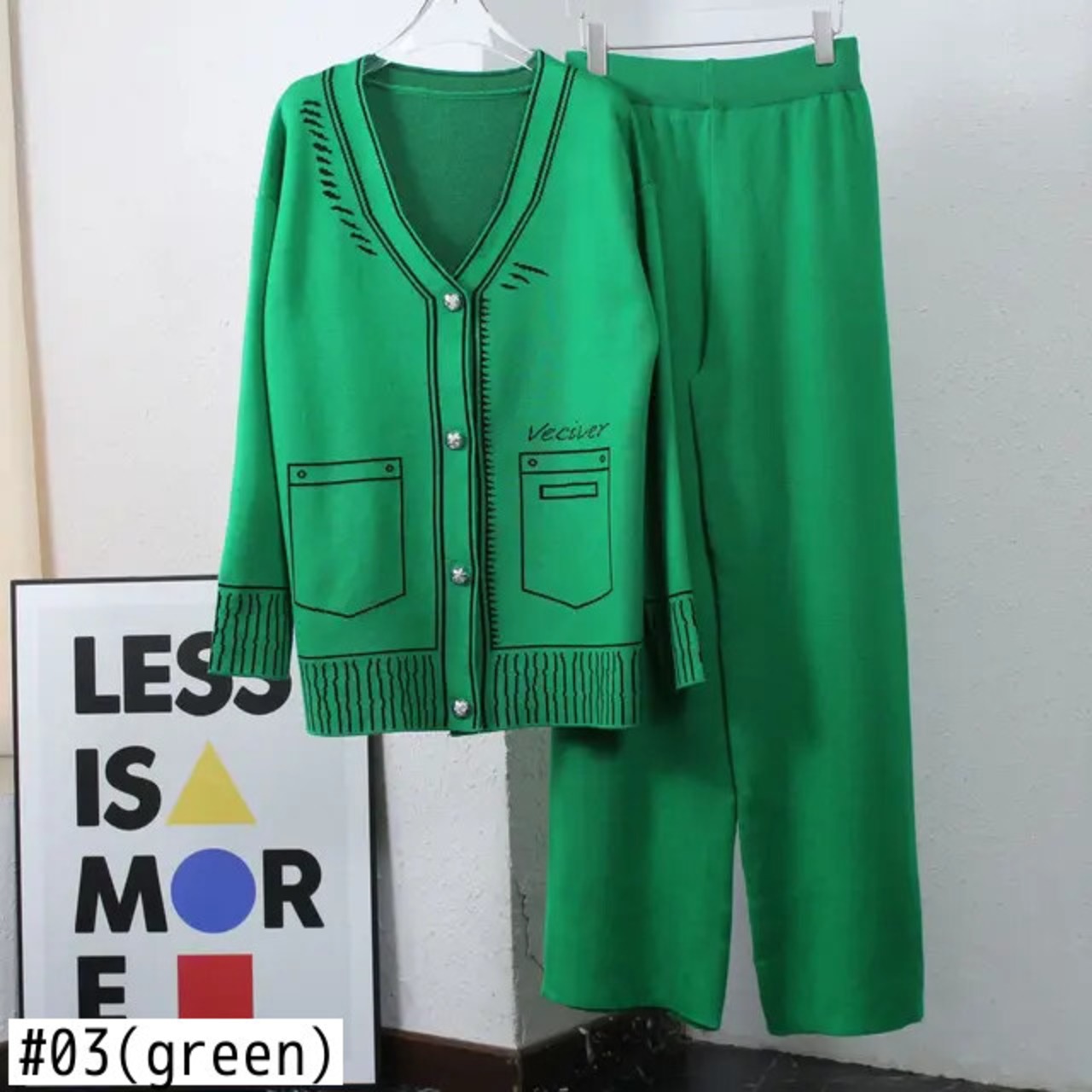 Nomikuma 長袖カーディガン因果ワイドレッグパンツ 2 枚漫画 2 枚セット秋冬ニット ロング オータム 秋物 ウィンター 冬物 ワイドパンツ