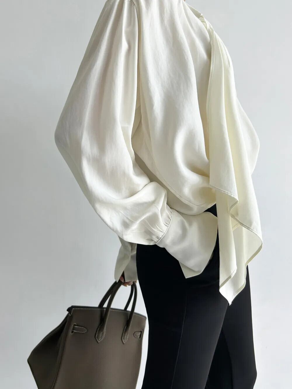 Nomikuma 半襟リボンカジュアル長袖ソリッドブラウス秋プルオーバーデ ロング オータム 秋物 ソリッドカラー