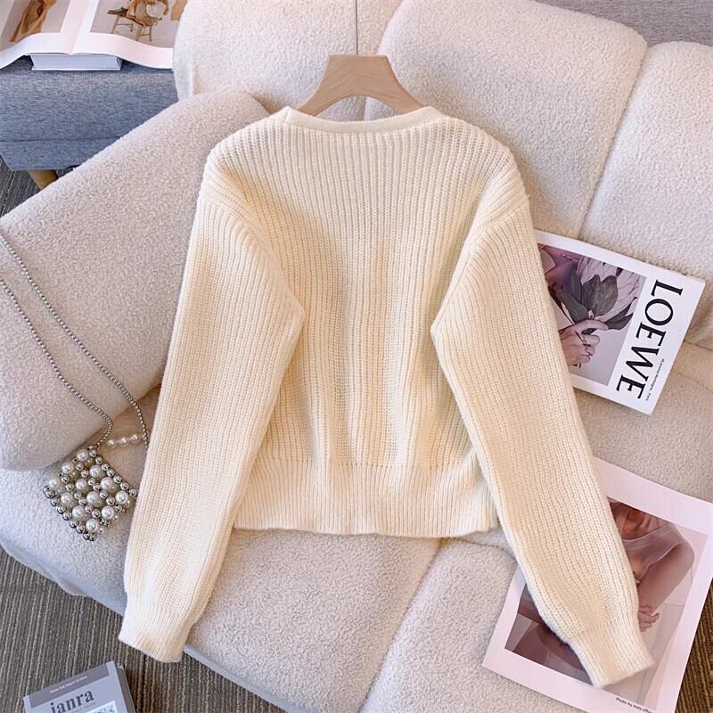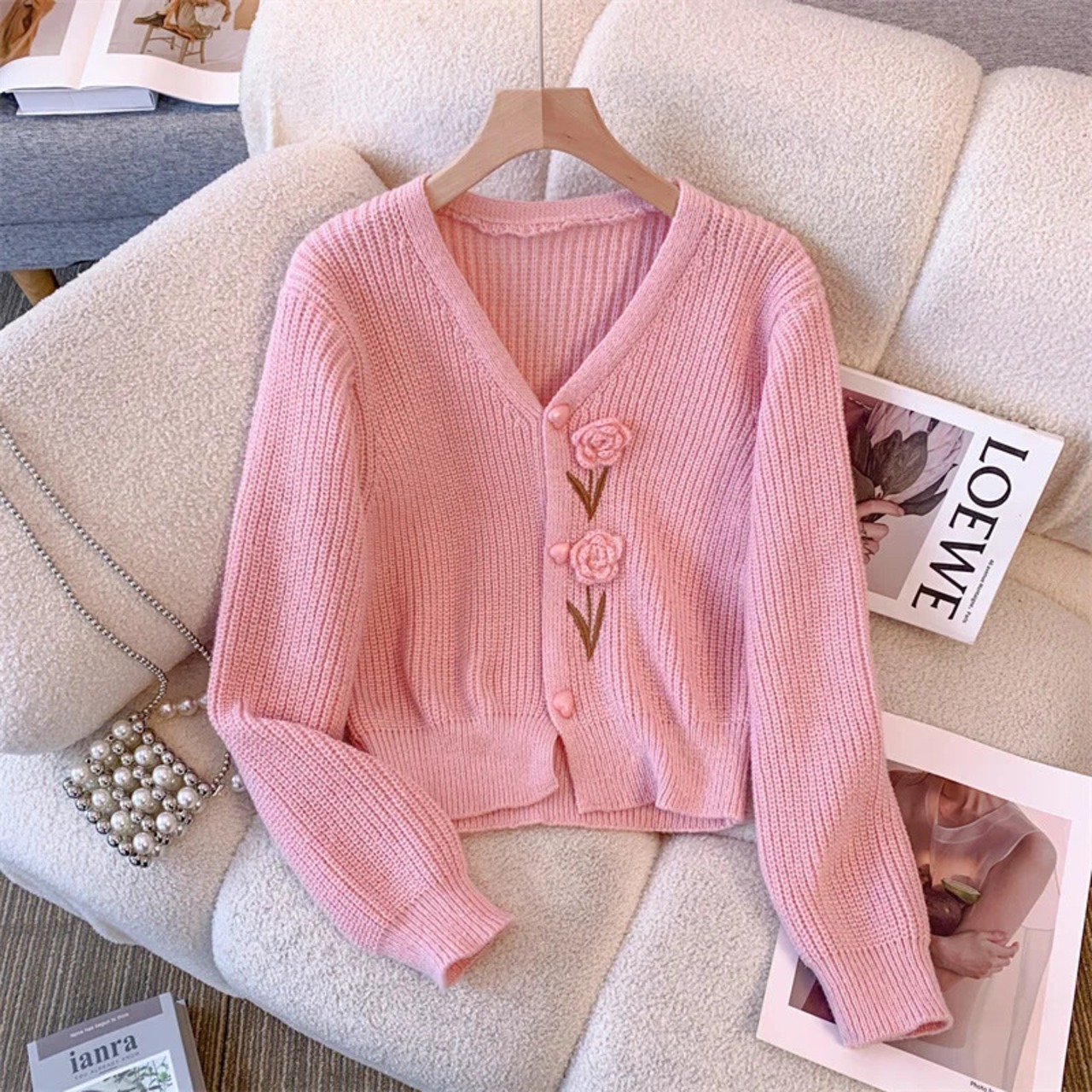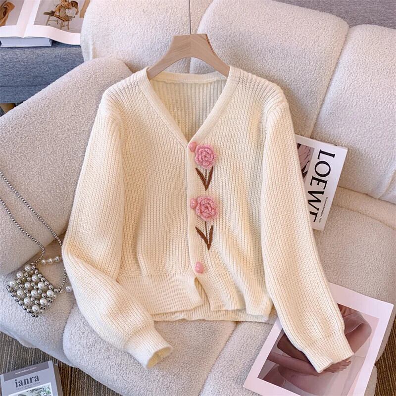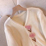 Nomikuma 秋 V ネック 3D 花刺繍ニットカーディガン長袖 V ネックセーターニットトップス ロング オータム 秋物 Vネック フラワーデザイン