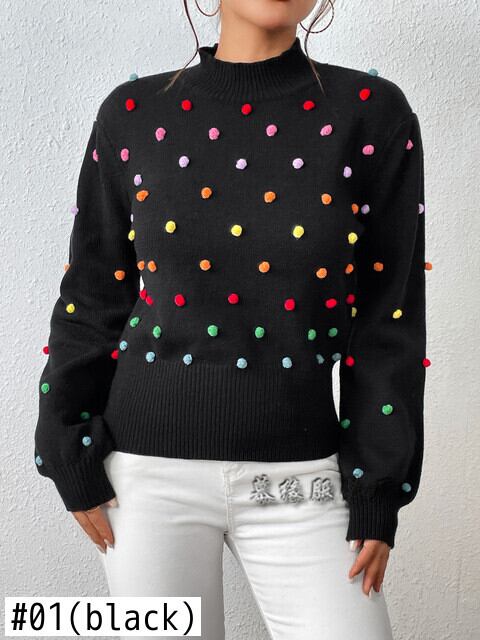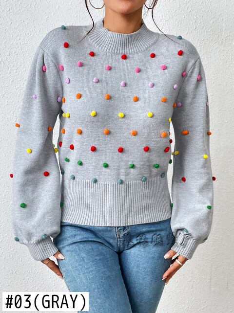 Nomikuma プルシックカラフルファーボールセーター O ネックプルオーバーニット秋冬ニットトップス オータム 秋物 ウィンター 冬物 Oネック