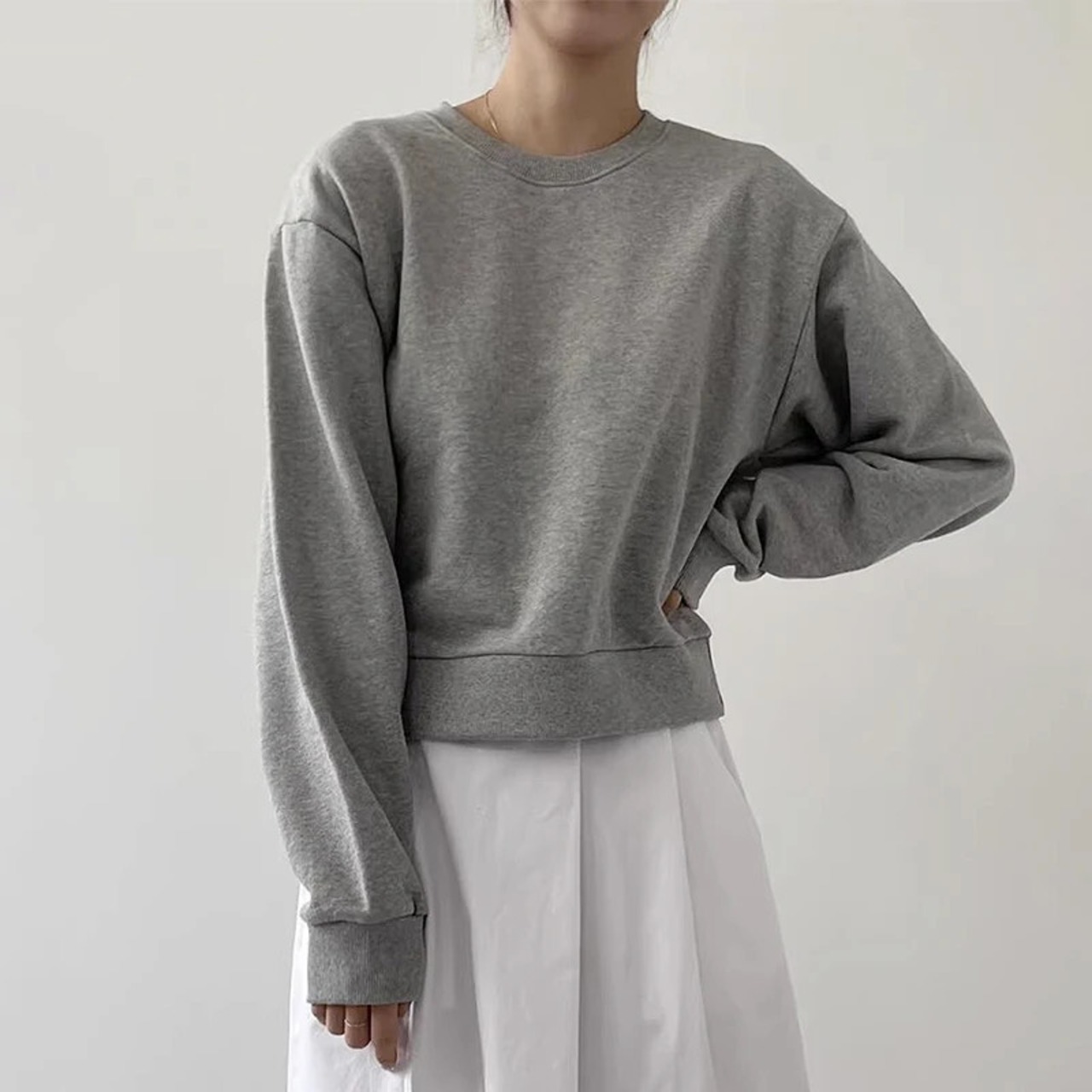 Nomikuma 因果バックソリッドフェイク 2 枚スウェット Kroean 長袖 O ネックプルオーバー秋トップジャンパー ロング シャツ オータム 秋物 Oネック ソリッドカラー