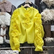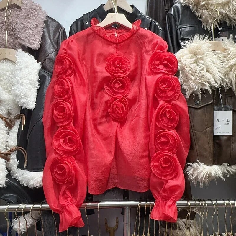 Nomikuma ローズフラワーフレア長袖ブラウス秋甘いスタンドネックシックシャツ s ロング 大人ガーリー スウィート キュート カジュアル オータム 秋物 フラワーデザイン