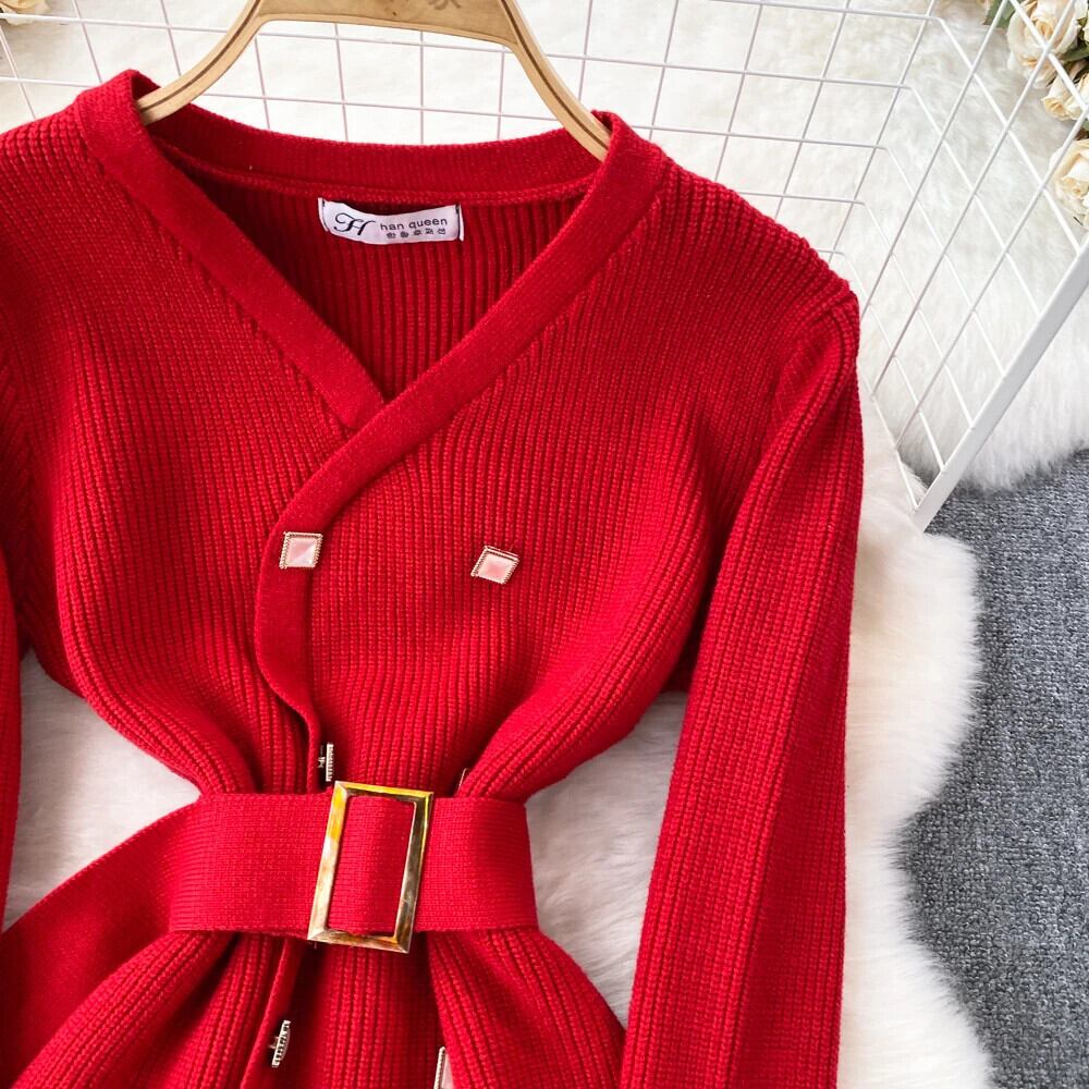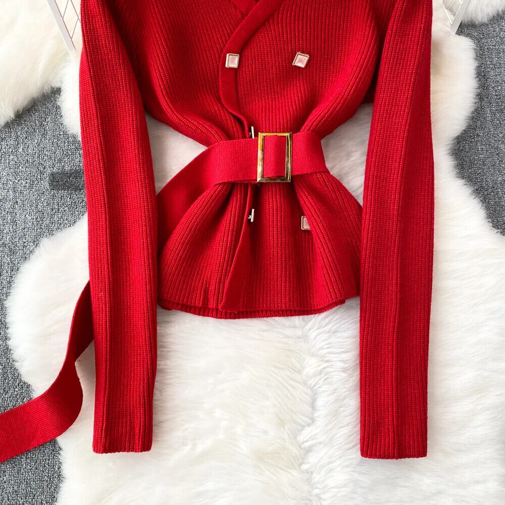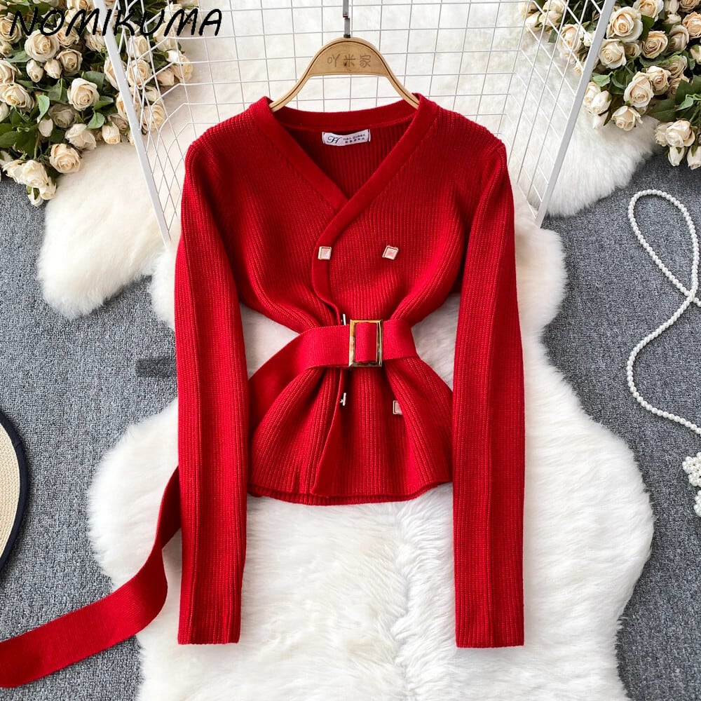 Nomikuma 秋冬 V ネックダブルブレスト Sim ウエストニットセータートップスセーター オータム 秋物 ウィンター 冬物 Vネック