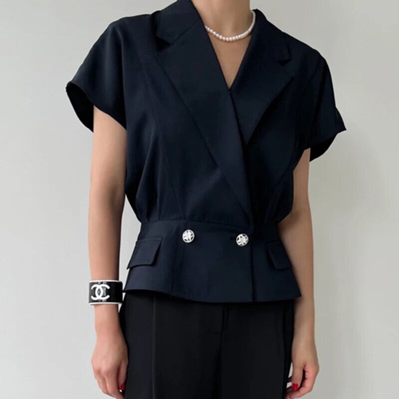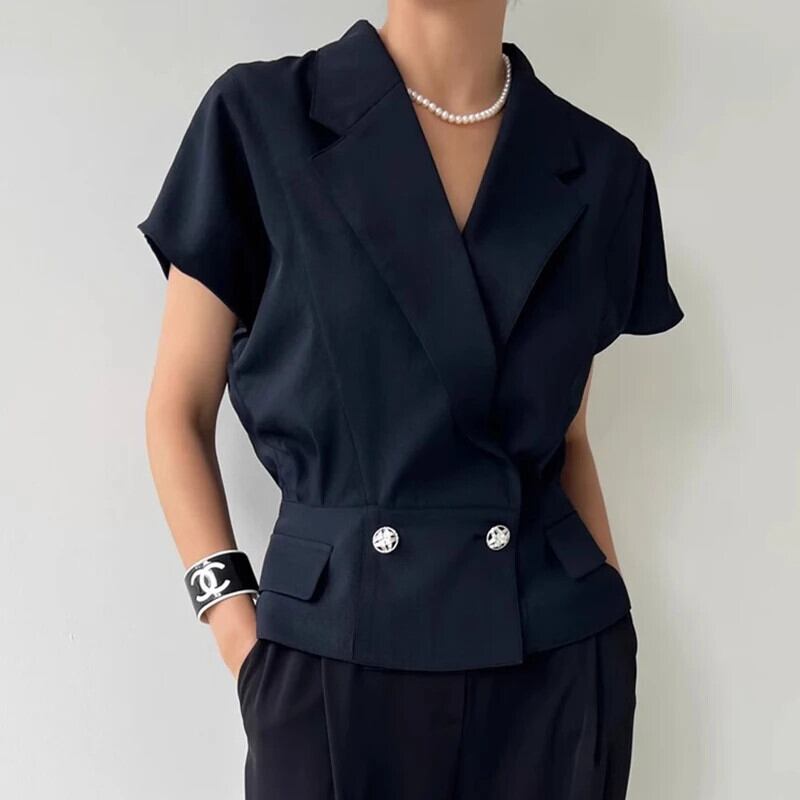 Nomikuma ターンダウン襟ショートブレザーダブルブレストスリムウィストテーラードコートスーツジャケット レッド