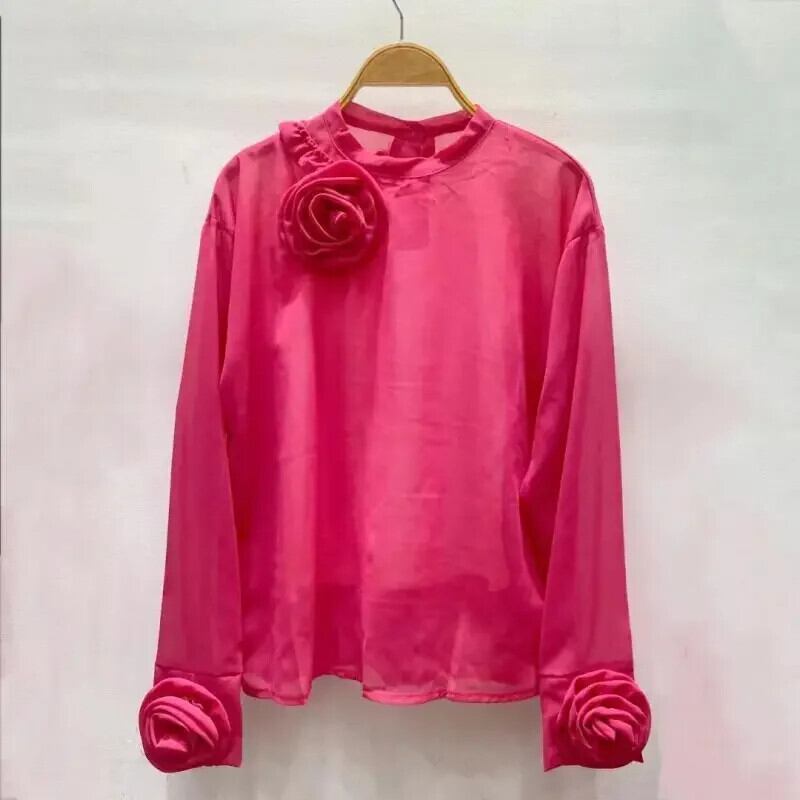 Nomikuma 3D フラワートップスシックボトリングシャツ秋長袖 ロング オータム 秋物 フラワーデザイン