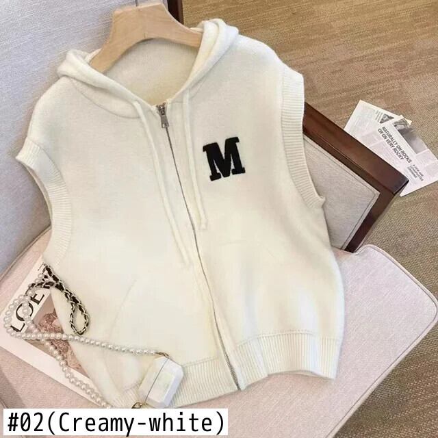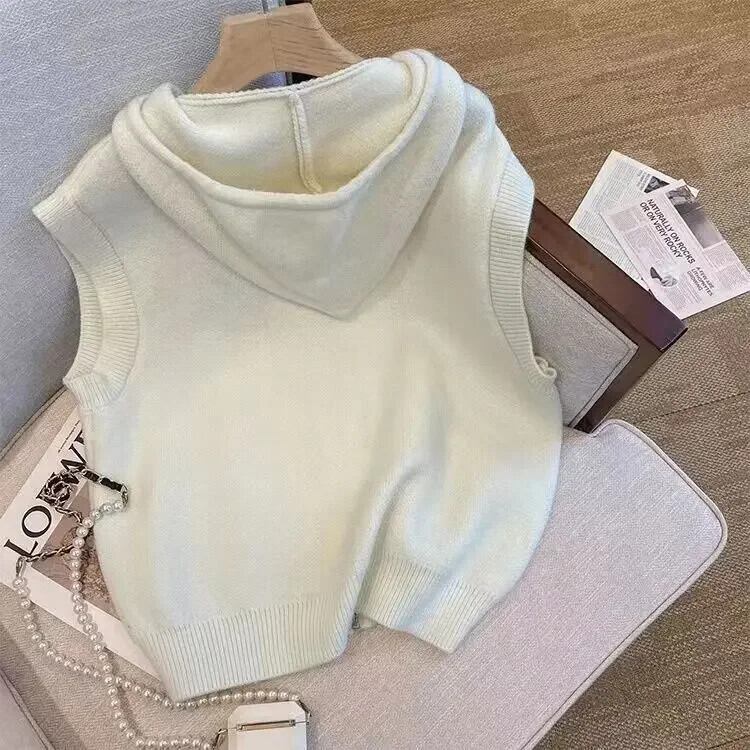 Nomikuma プレッピースタイル巾着フード付きニットチョッキ秋ジッパーレターセーターベスト オータム 秋物