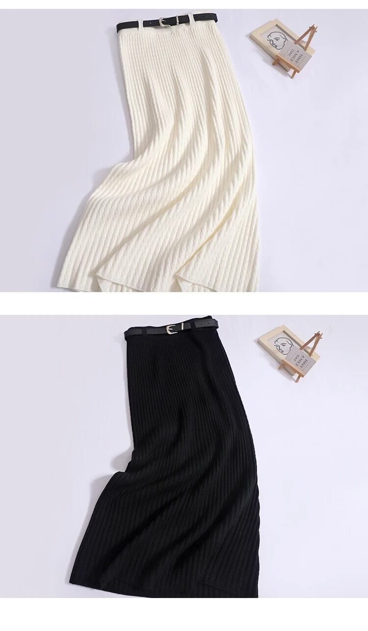 Nomikuma 秋冬 ミディアムロング ウエスト Aライン ニット スリムスカート セーター ストレート ワンステップスカート オータム 秋物 ウィンター 冬物