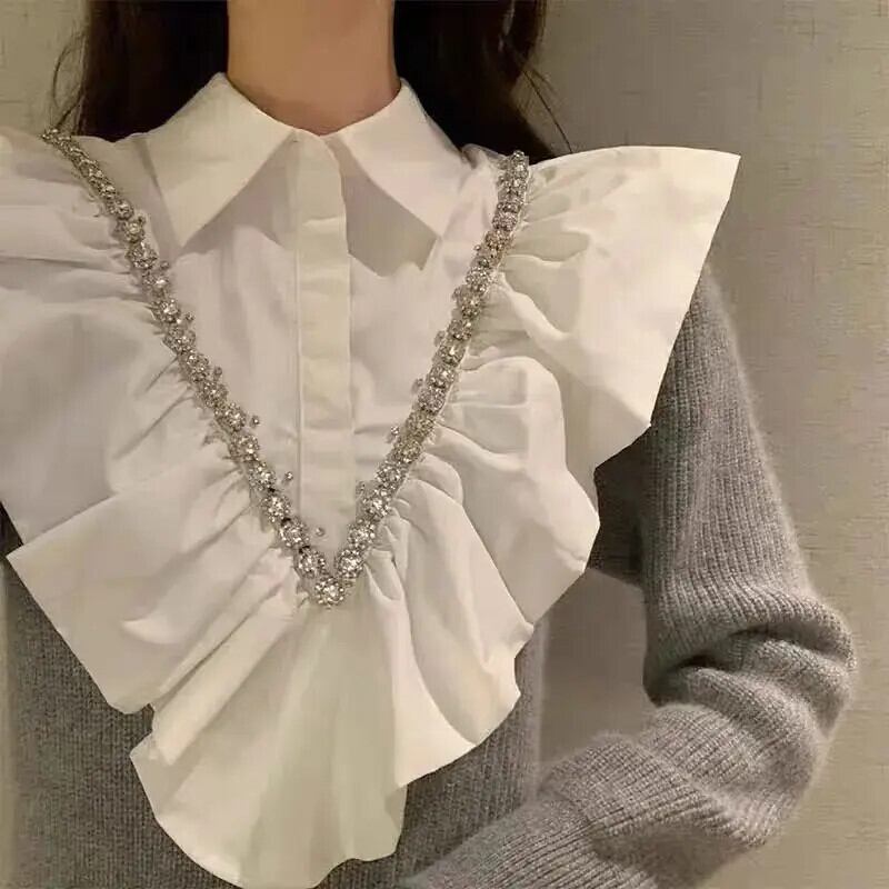 Nomikuma ダイヤモンド フリル ターンダウンカラー パッチワーク セーター ドレス 秋冬ニット スリム ウエスト A ライン ドレス オータム 秋物 ウィンター 冬物 Aライン
