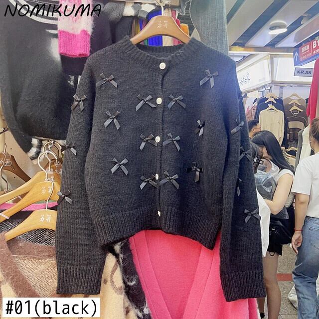 Nomikuma 秋冬 O ネックちょう結びシングルブレストカーディガンセーターニットトップス リボン オータム 秋物 ウィンター 冬物 Oネック ソリッドカラー