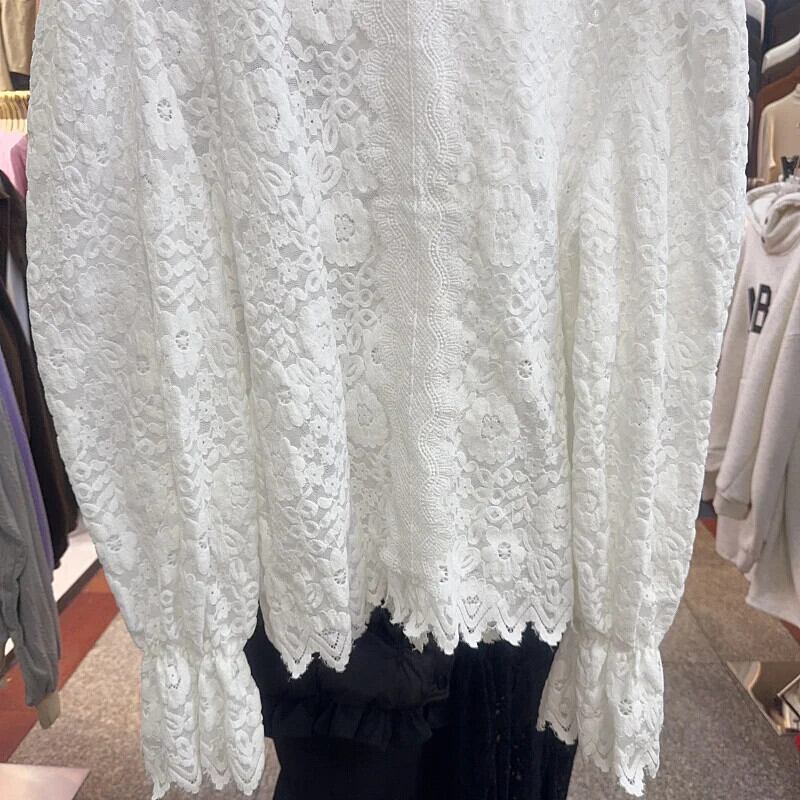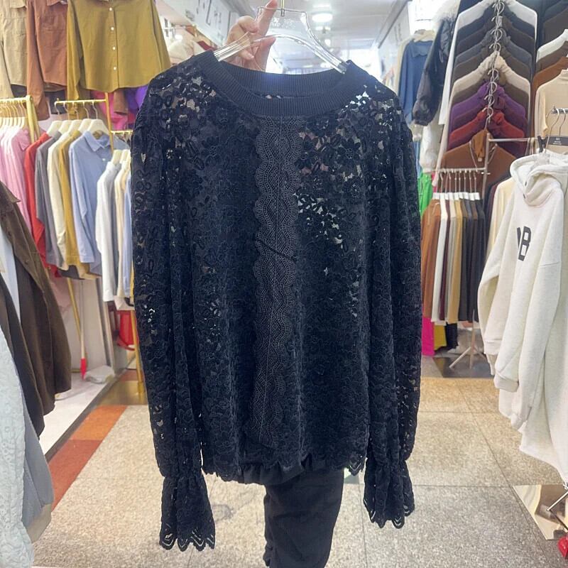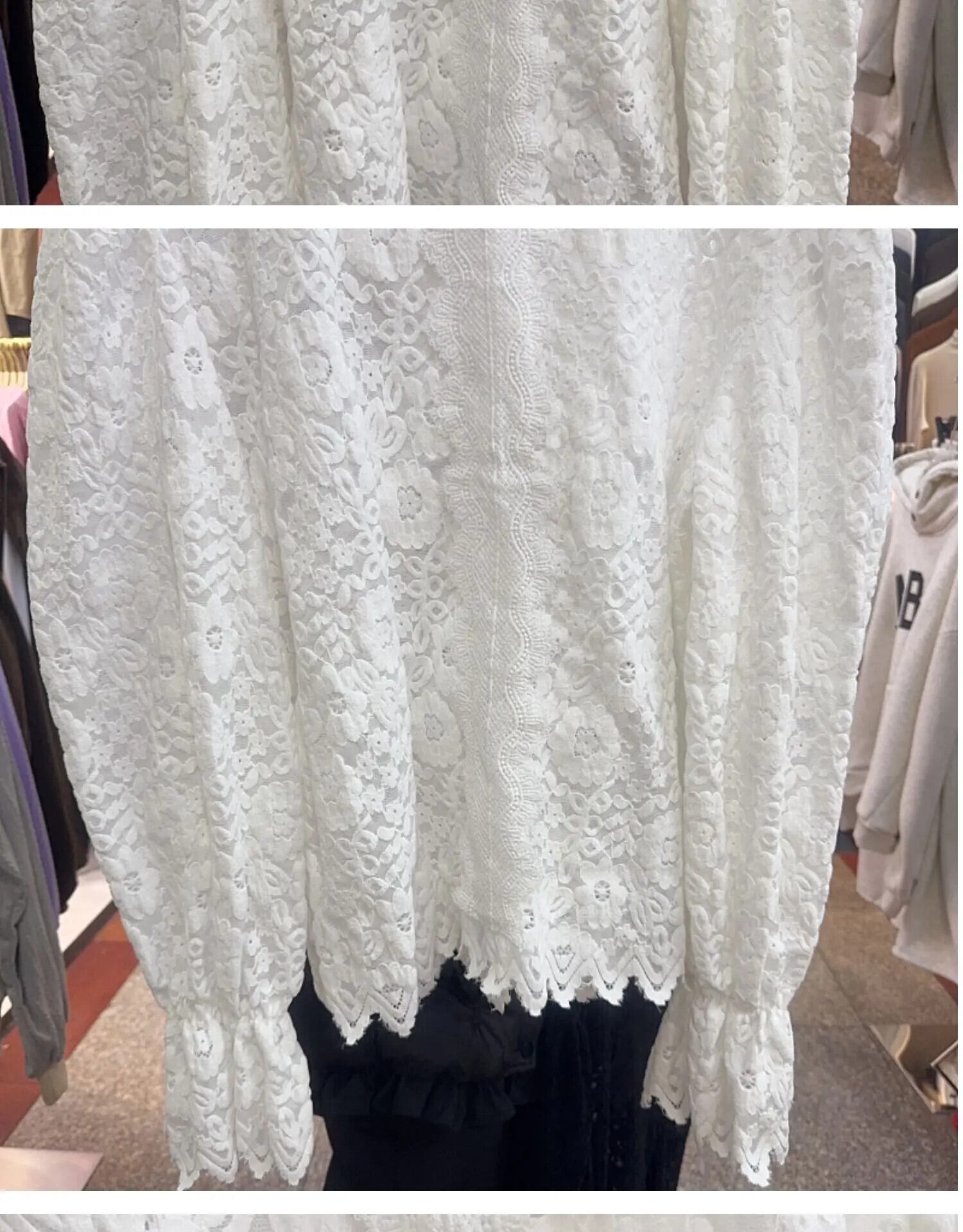 Nomikuma 秋スタイル ラウンドネック フレア長袖ブラウス レディース カジュアル レース シャツ ロング オータム 秋物 Oネック