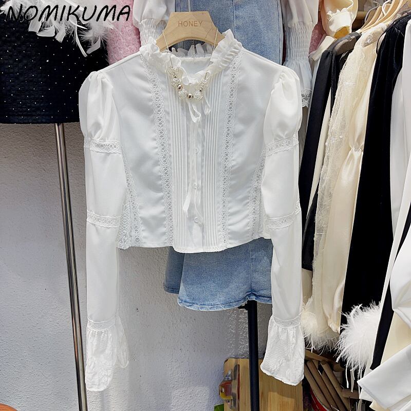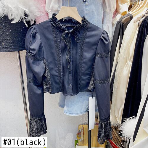 KUSAHIKI 秋シック蝶ネクタイレーススプライススリーブシャツトップスデ リボン オータム 秋物