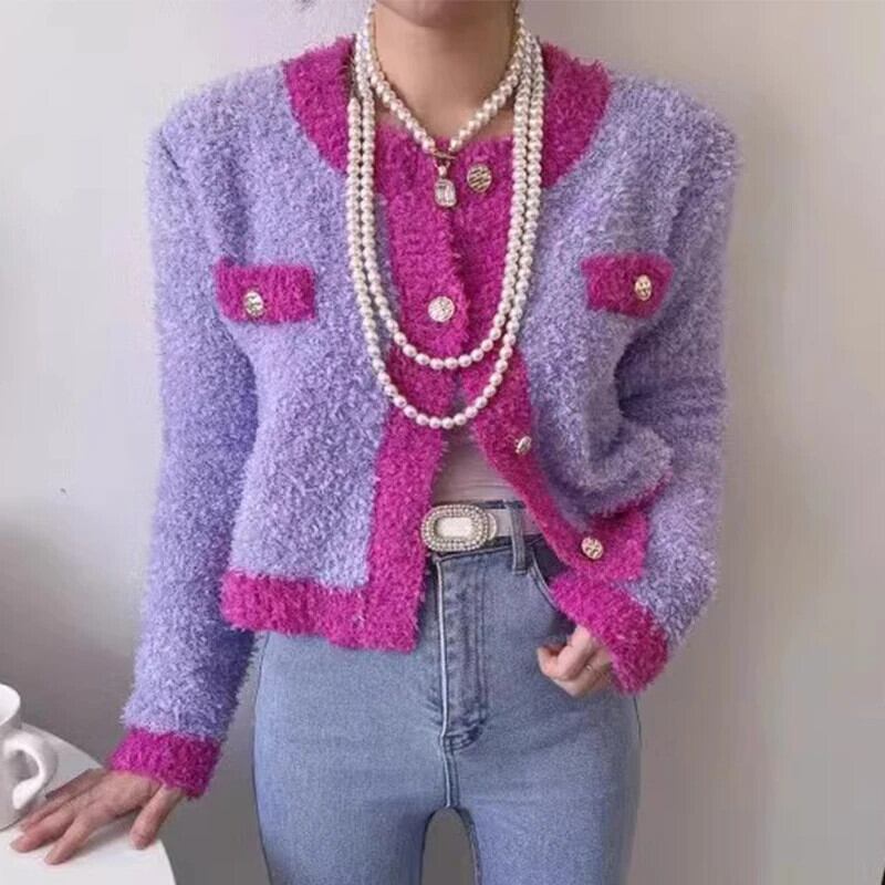 Nomikuma シック秋ヒットカラーセーターコート因果ショートニットジャケット秋冬ニットカーディガン オータム 秋物 ウィンター 冬物