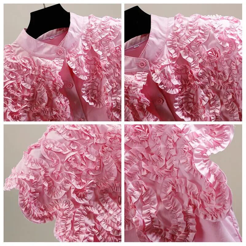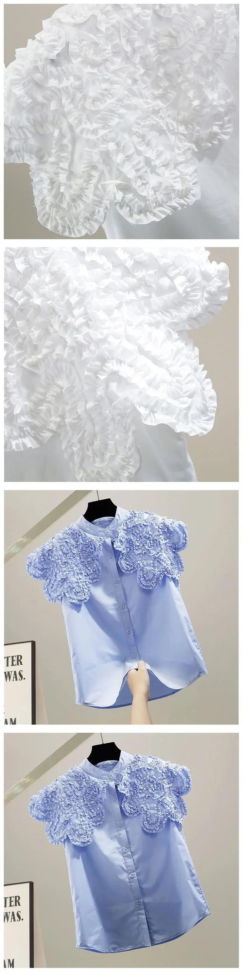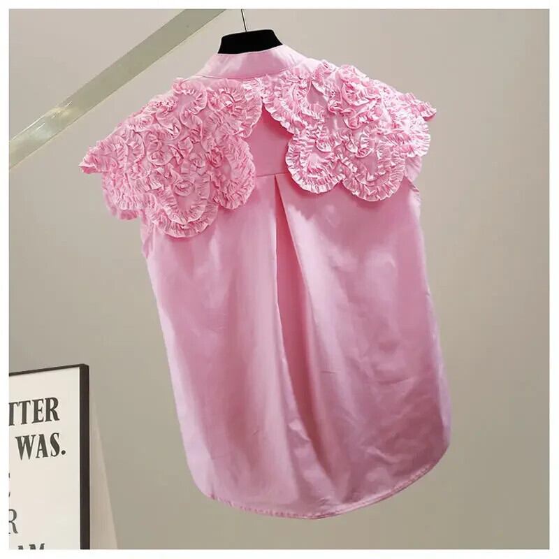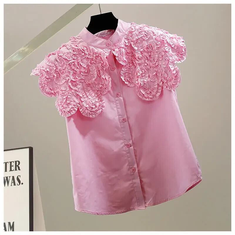 Nomikuma 因果フライング スリーブ レディース トップ サマー シック 食用木菌 フリル パッチワーク ブラウス シャツ 夏物