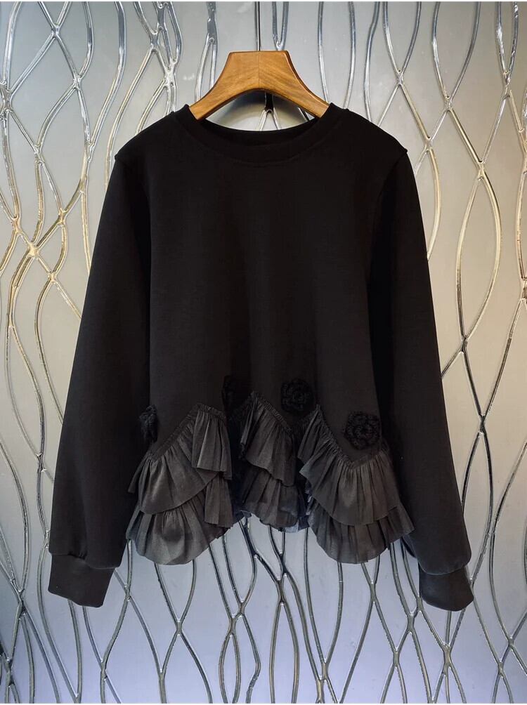 Nomikuma 花柄プリーツパッチワークフリルエッジパーカー秋冬スタイリッシュカジュアルトップジャンパー オータム 秋物 ウィンター 冬物