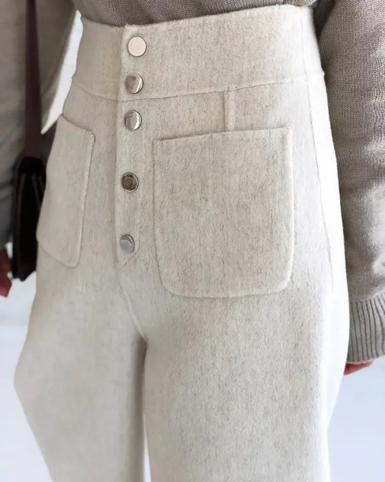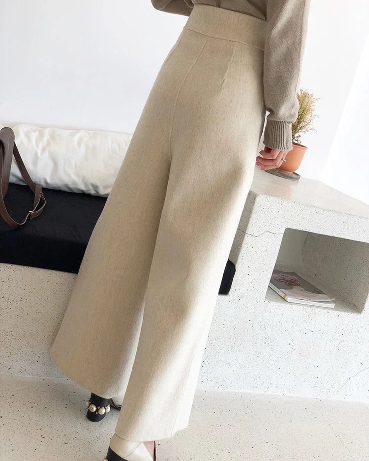 Nomikuma ウール ワイドレッグ パンツ ウエスト付き レディース ロングパンツ カジュアル ソリッド ワイドレッグ パンツ ワイドパンツ ソリッドカラー