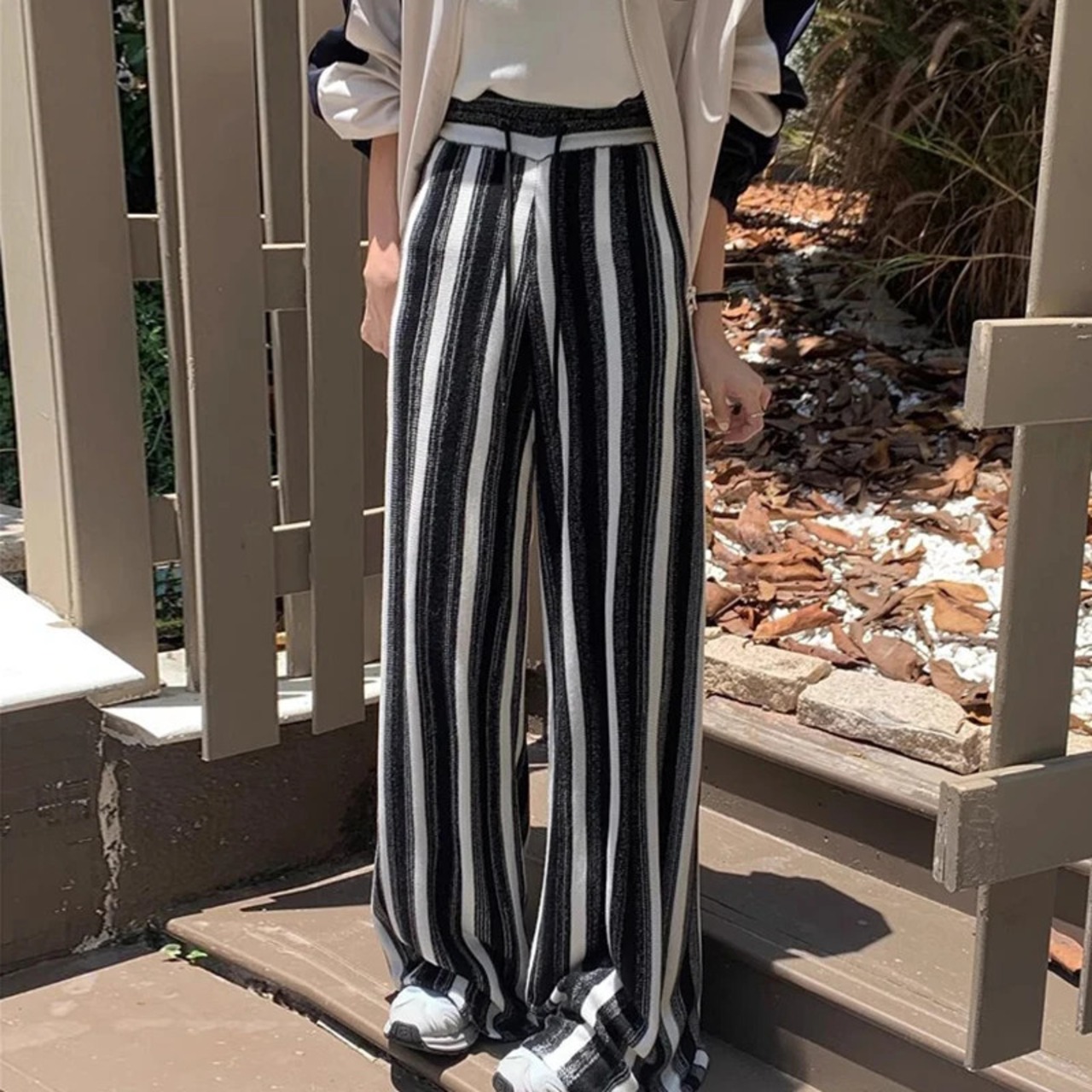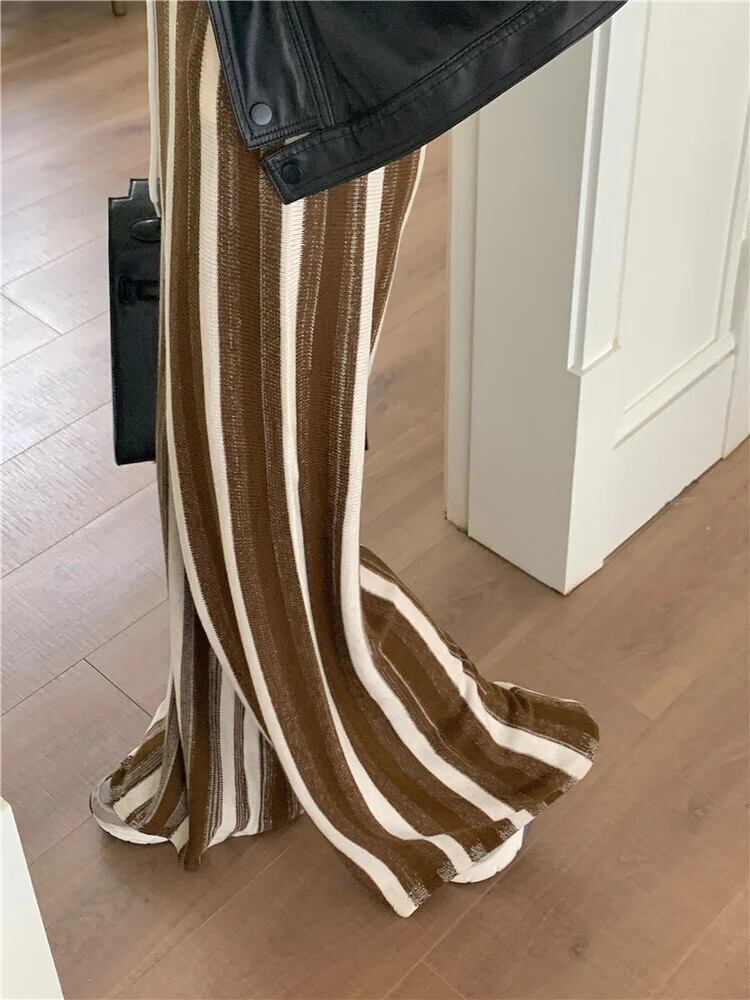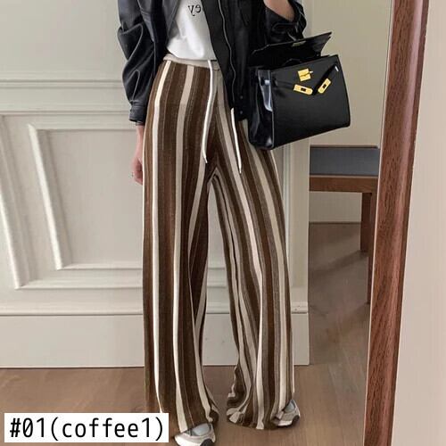 Nomikuma 秋冬ヒットカラーストライプウエストニットカジュアルワイドレッグロングパンツパンタローネヴェラーノ オータム 秋物 ウィンター 冬物 ワイドパンツ