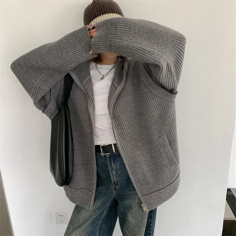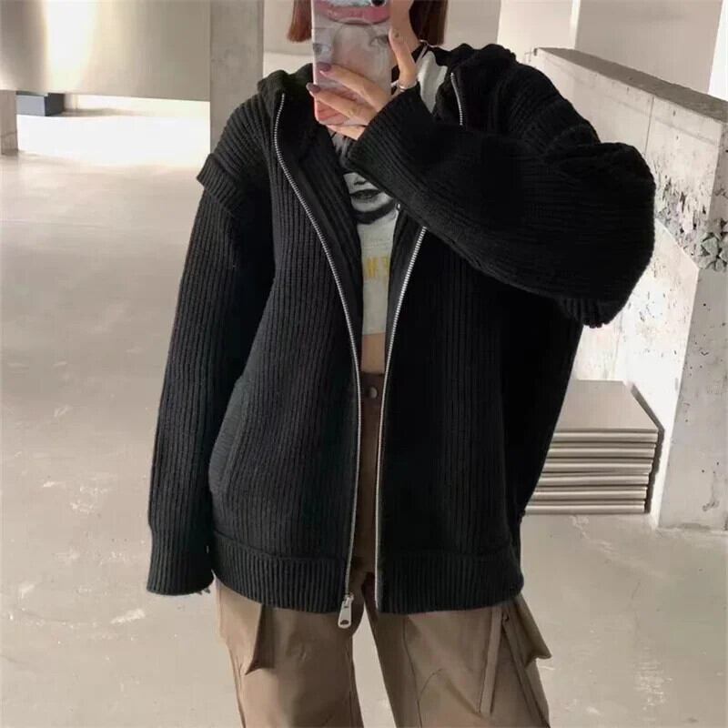 Nomikuma 偽二枚フード付きジッパーニットカーディガン秋冬因果セーターコート オータム 秋物 ウィンター 冬物