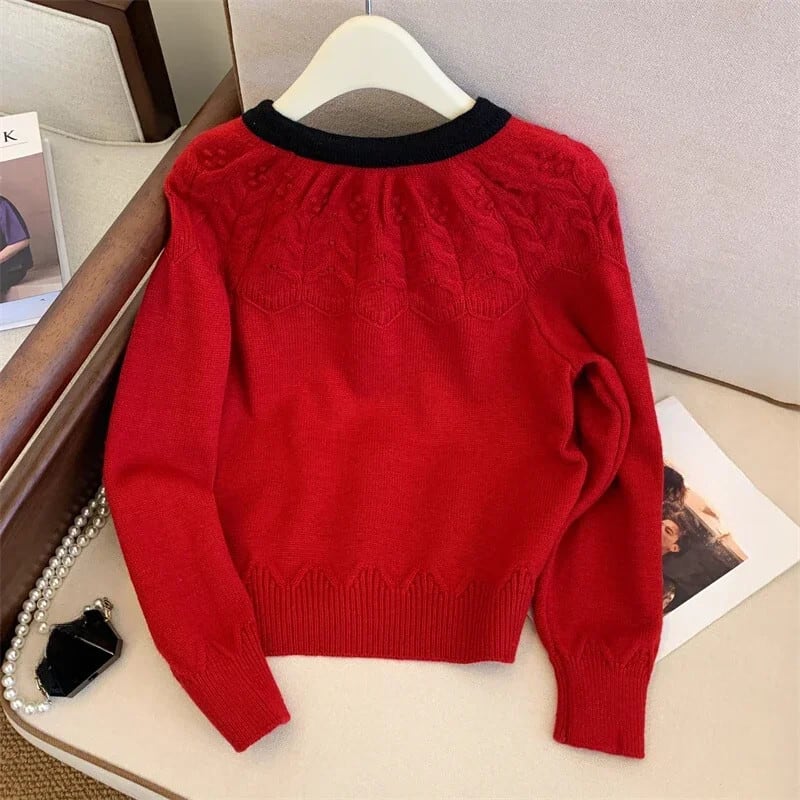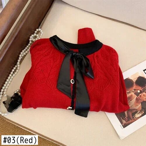 Nomikuma 甘いヒットカラーレースアップ弓 O ネック因果セーターコート秋冬ニットカーディガンジャケット リボン 大人ガーリー スウィート キュート カジュアル オータム 秋物 ウィンター 冬物 Oネック