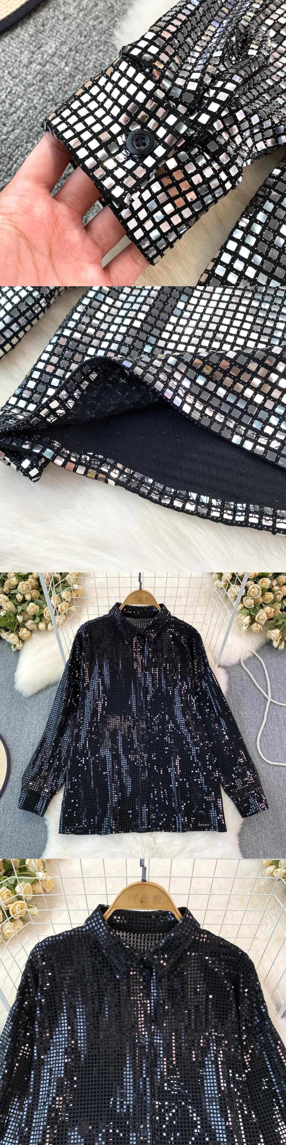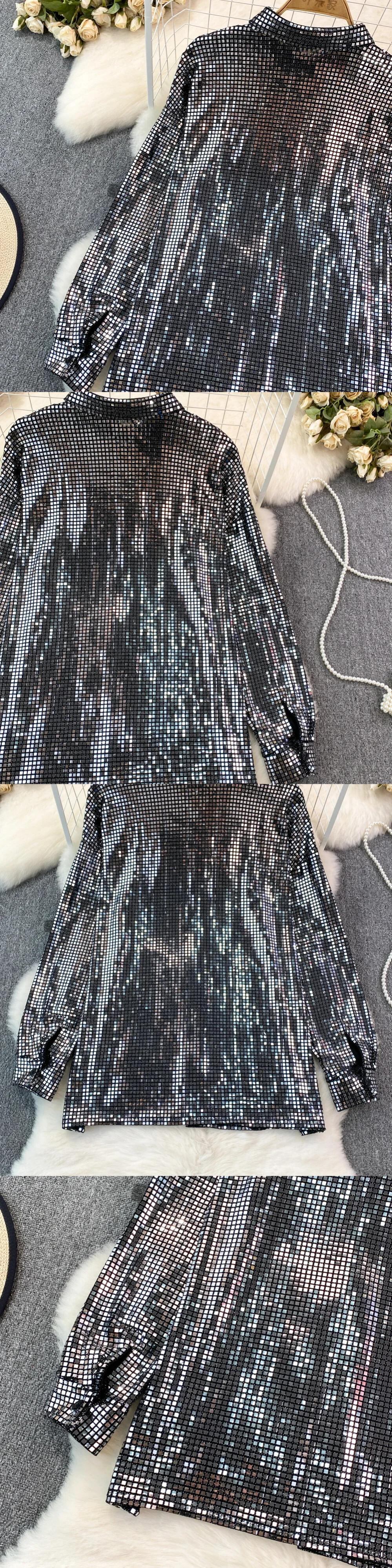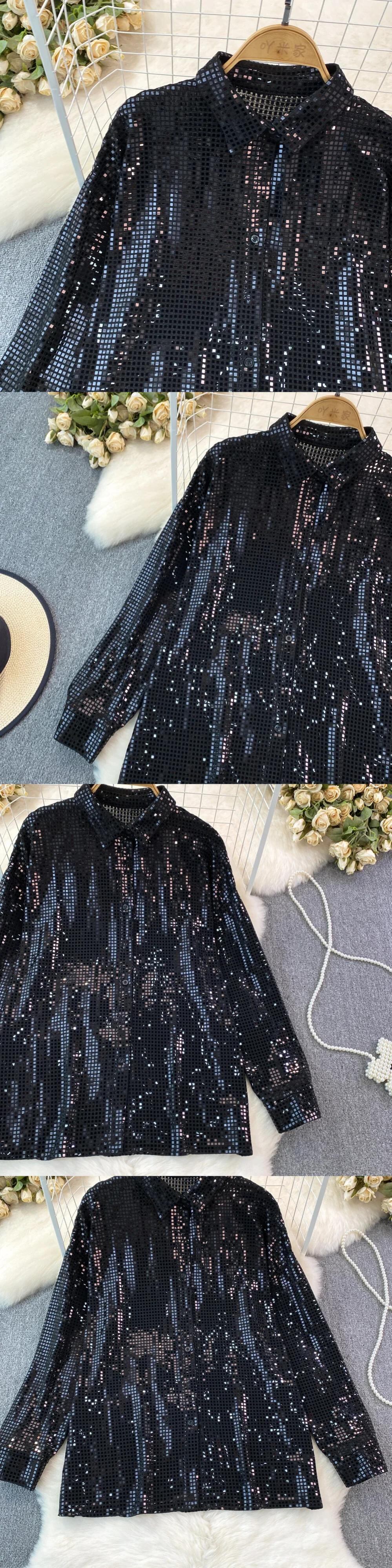 Nomikuma 長袖ターンダウンカラーシングルブレストシャツケバケバスパンコールブラウスカジュアルトップス ロング