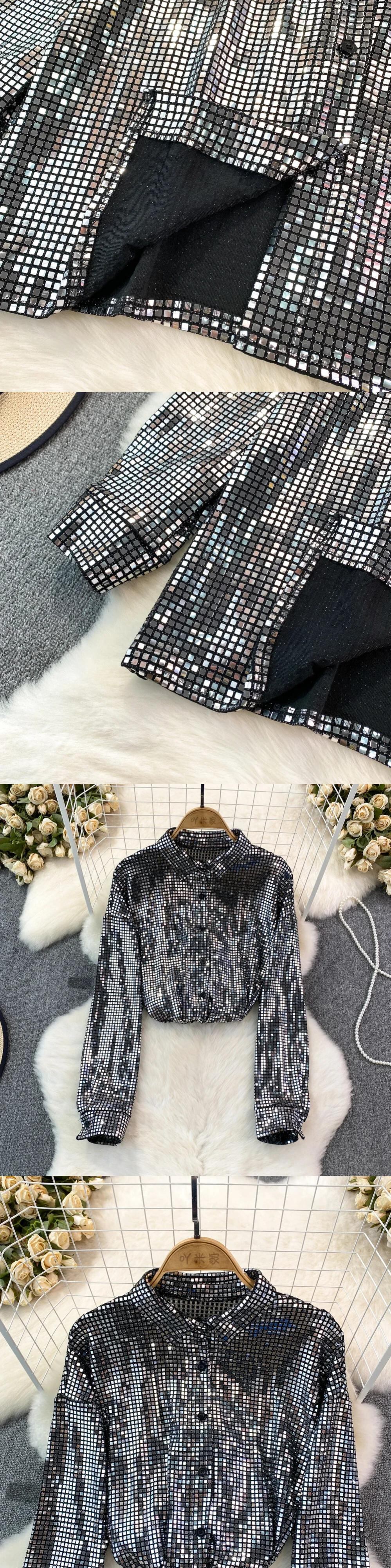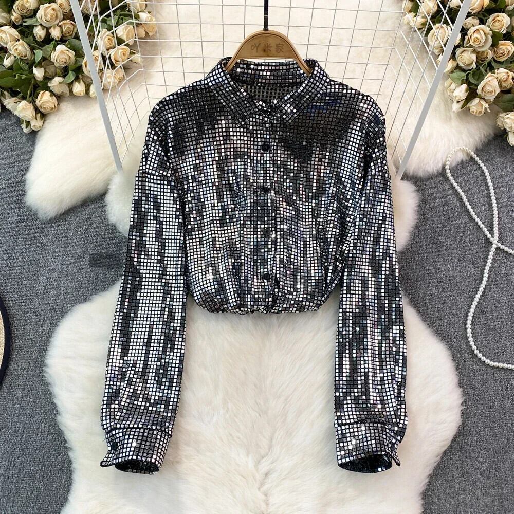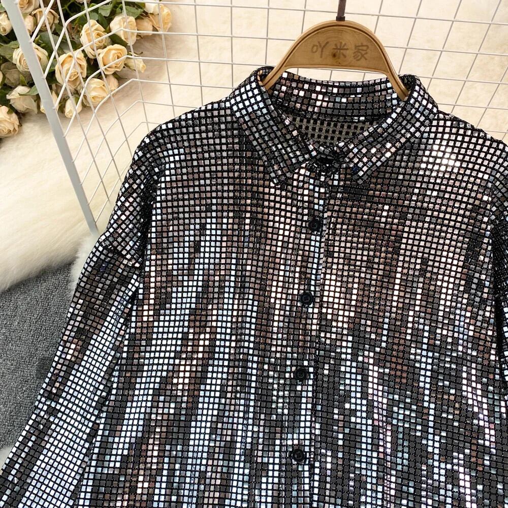 Nomikuma 長袖ターンダウンカラーシングルブレストシャツケバケバスパンコールブラウスカジュアルトップス ロング
