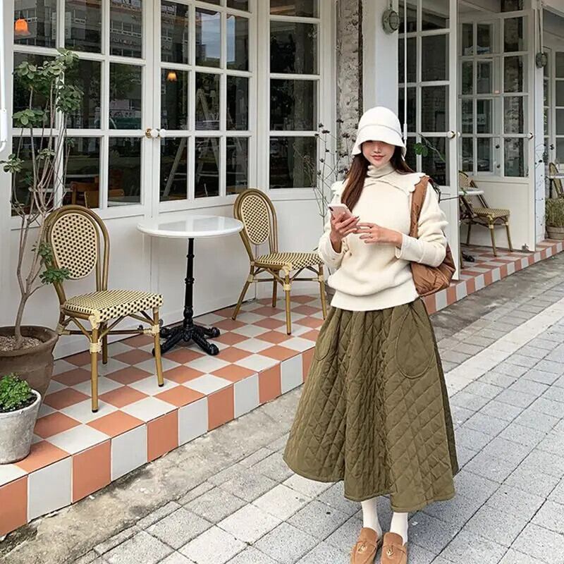 Nomikuma パッチポケットアーガイルスカート Utumn 冬ウエスト因果 A ラインスカート Faldas デボトムス ウィンター 冬物 Aライン