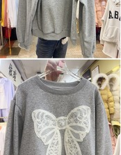 Nomikuma フリース パーカー 長袖 レディース 秋/冬 プルオーバー ラウンドネック 刺繍 リボン カジュアル スウェットシャツ トップ ロング レッド オータム 秋物 ウィンター 冬物 Oネック