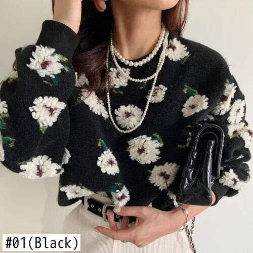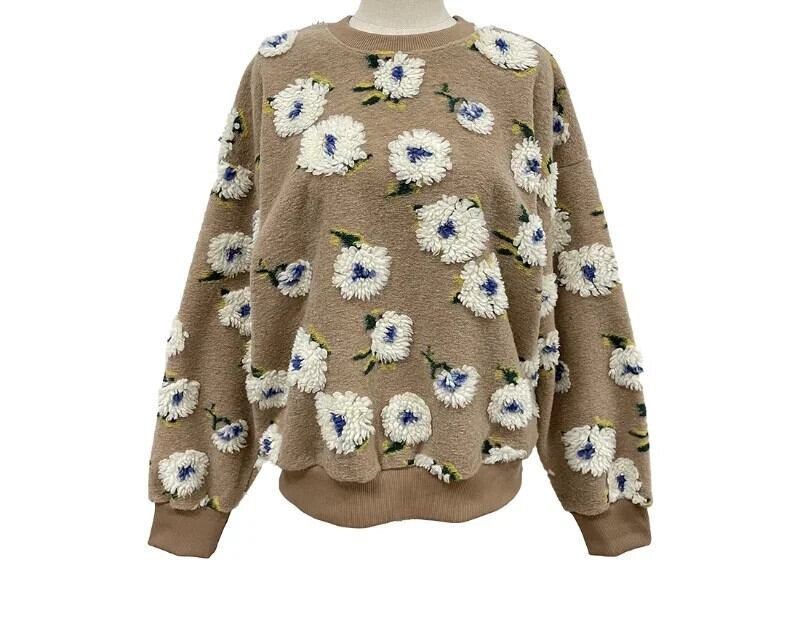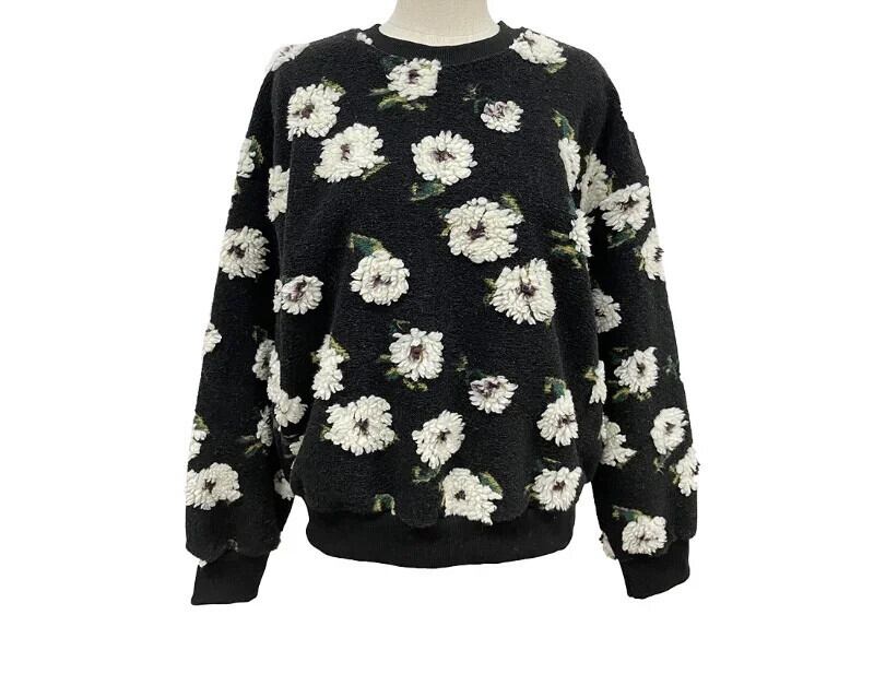 Nomikuma シック冬レトロラウンドネック 3D フラワー多用途ラムウールパーカープルオーバートレーナー ウィンター 冬物 Oネック フラワーデザイン