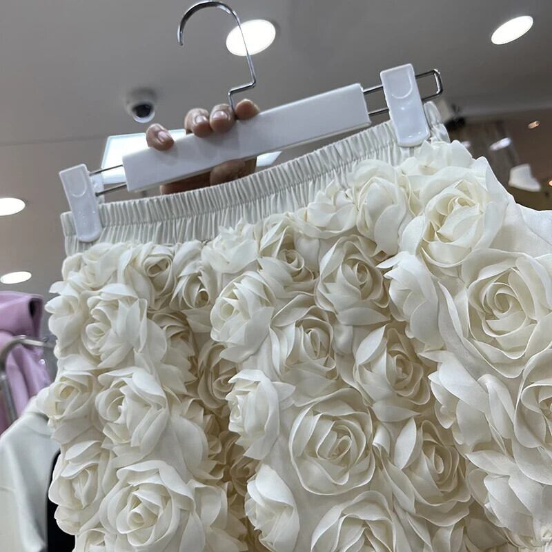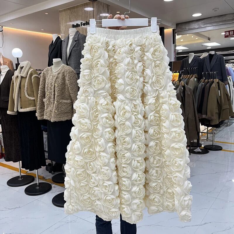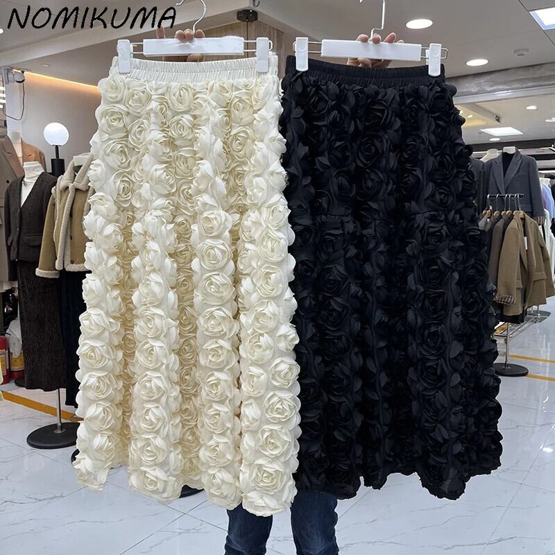 Nomikuam 3D 花メッシュスカートレディースウエストカジュアル A ラインロングスカート Fadas デ 2024 ボトムス Aライン フラワーデザイン