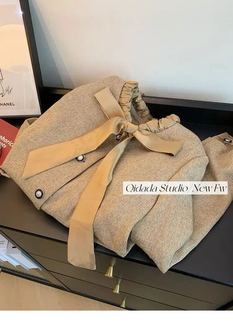 Nomikuma ヒットカラーリボン包帯 O ネックシングルブレストショートジャケット長袖カーディガンアウターコート ロング Oネック