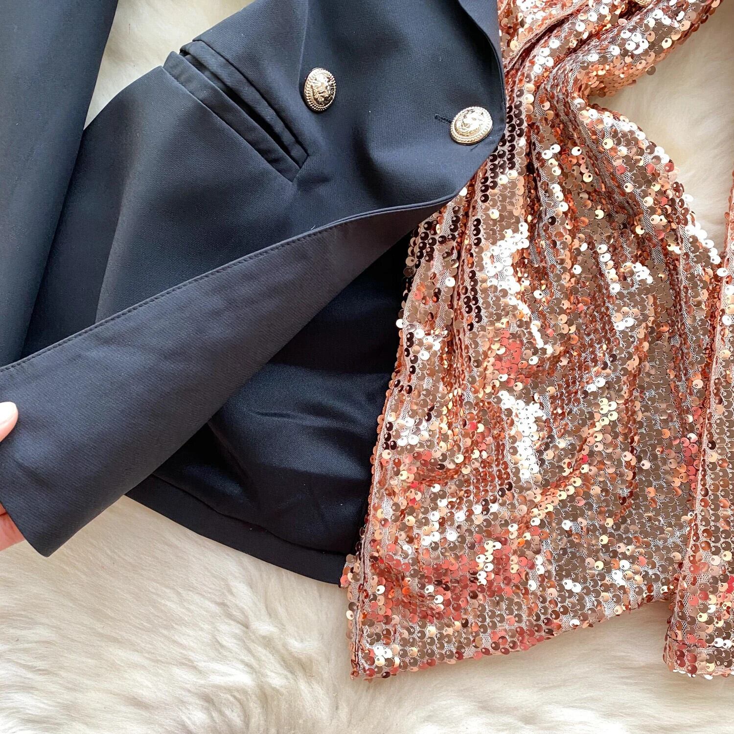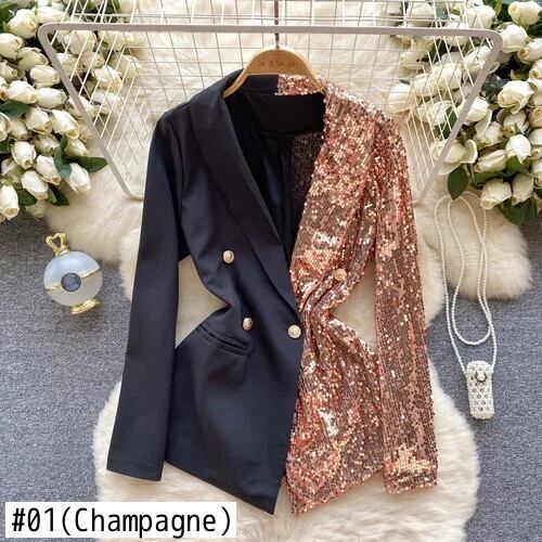 Nomikuma スーツ ジャケット ニッチ スパンコール コントラストカラー パッチワーク可能で万能スーツ トップ